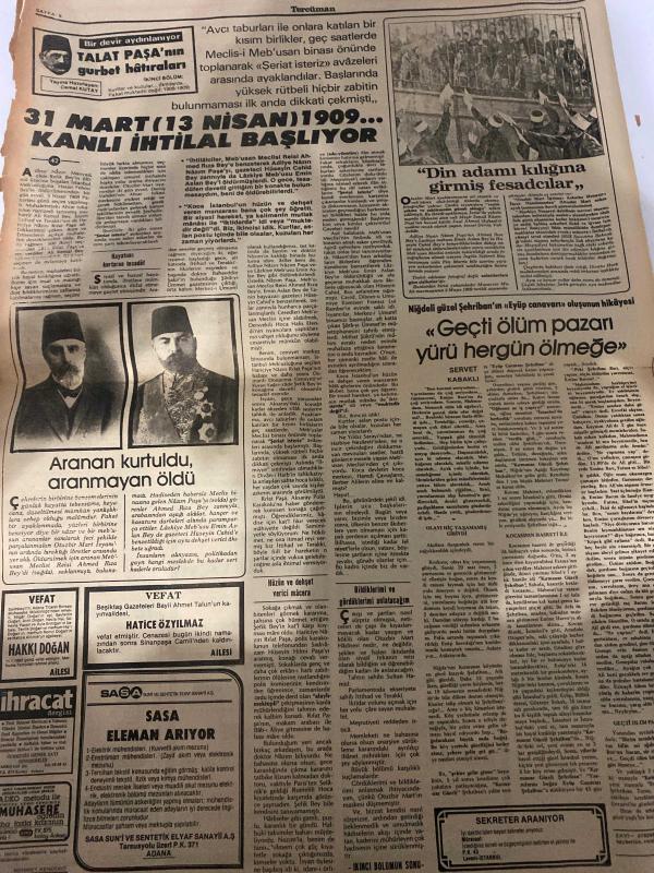 TERCÜMAN GAZETESİ - 13 OCAK 1983 - SAYI:42 - (Turkish Newspaper) - Sadece Arkalı Önlü Tek Yapraktır - Bir Devir Aydınlanıyor - Talat Paşa’nın Gurbet Hatıraları-Ahmet Emin Yalman-Ali Kemal-Kemal Bey-Rıza Bey-Nâzım Paşa-Hüseyin Cahid-Bahattin Şakir-Ahmet Rıza Bey-Selahattin Bey-Talat Paşa-Cemal Kutay-Rahmi Bey-Enver Paşa-Fevzi Çakmak-Hoca Halis Efendi-Mithat Şükrü-Servet Kabaklı-Şehriban-Mahmut-Fatma-Sibel-Emine-Zeki-Mehmet-Davut Işık-Baynihat-Sermet Pasin-Mahmut Yazar-Osman Şıklar-Refik Pasin-Yusuf Karakaya-Hatice Özyılmaz-Hakkı Doğan-Ronald Reagan-John Block-Türkiye, Uzakdoğu’nun ticari üssü olabilir-31 MART(13 NİSAN) 1909 KANLI İHTİLAL BAŞLIYOR-Aranan kurtuldu, aranmayan öldü-“Geçti ölüm pazarı yürü hergün ölmeğe”-Döviz kazandıranlar yüzde 5’ini kendi ihtiyacında kullanabilecek-Vefat ve Başsağlığı-SASA ELEMAN ARIYOR-Hüzün ve dehşet verici mâcera-Bildiklerimi ve gördüklerimi anlatacağım-Siyasî ve hususî hayatımda, iftiralara mümkün olduğunca iltifat etmemeye gayret etmişimdir.-Hayatımı adlı eser Türkçe dilindedir.