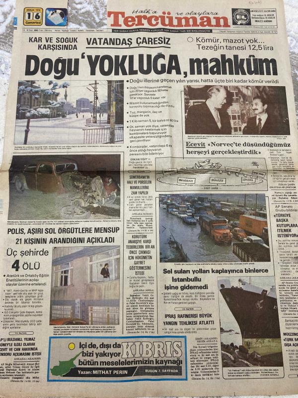 TERCÜMAN GAZETESİ - 16 ARALIK 1978 - SADECE 2 SAYFADIR -Ecevit-Nihat Erim-Kenan Evren-Mithat Perin-Ahmet Kabaklı-Ali Rıza Alp-Rauf Tamer-Doğu yokluğa mahkûm-Ecevit Norveç’te düşündüğümüz her şeyi gerçekleştirdik-Polis aşırı sol örgütlere mensup 21 kişinin arandığını açıkladı üç şehirde 4 ölü-Sümerbank’ın halı ve perşembe mamullerine zam yapıldı-Sel suları yolları kaplayınca binlerce İstanbullu işine gidemedi-İpras rafinerisi büyük yangın tehlikesi atlattı-Barbar’dan Barbara fark-Ortaöğretimde konaklayan anarşi-Yalancının mumu-Kıbrıs içi de dışı da bizi yakıyor bütün meselelerimizin kaynağı adlı eser, Kitap > Süreli Yayınlar > Gazeteler > Türkiye > Genel > Günlük kategorisinde İkinci El olarak satıştadır.