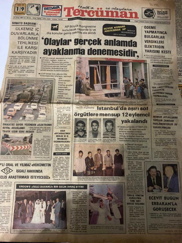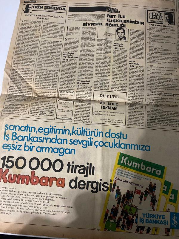 TERCÜMAN GAZETESİ - 19 EKİM 1978 - SADECE 2 SAYFADIR -Atalay-Mehmet Muhsinoğlu-Bekir Aydin-İhsan Mungan-Ecevit-Erbakan-Ahmet Kabaklı-Dr. Havil Ürgüplü-Rauf Tamer-Ali Behiç Tokman Senato Başkanı: Ülkemiz iç duvarlarla bölünme tehlikesi ile karşı karşıyadır-Olaylar gerçek anlamda ayaklanma denemesidir-İstanbul’da aşırı sol örgütlere mensup 12 eylemci yakalandı-Ödeme yapmayınca Bulgarlar verdikleri elektriğin yarısını kesti-Işık ve Otoketler vergi iadesinden ekonomik yararlandırılacak-Ecevit bugün Erbakan’la görüşecek-Ürdün’e telli duvaklı bir gelin ihraç ettik-Gün ışığında Devlet sendikacılığı faşizm-AET ile ilişkilerimizin siyasal ağırlığı-Sözün kısası Yarı aydın ihaneti adlı eser, Kitap > Süreli Yayınlar > Gazeteler > Türkiye > Genel > Günlük kategorisinde İkinci El olarak satıştadır.