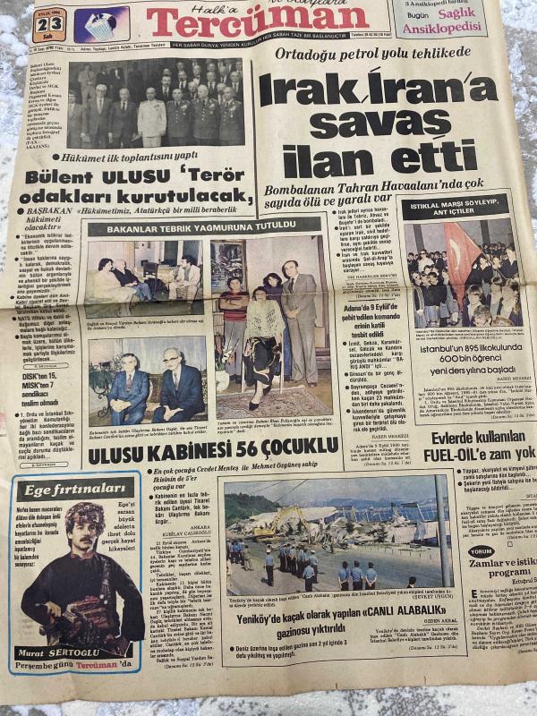 TERCÜMAN GAZETESİ - 23 EYLÜL 1980 - SADECE 2 SAYFADIR -Bülent Ulusu-Cevdet Menteş-Mehmet Özgenç-Murat Sertoğlu-Ahmet Kabaklı-Prof. Dr. Ali Nihad Tarlan-Prof. Mehmet Kaplan-Rauf Tamer-Irak İran’a savaş ilan etti-Bülent Ulusu Terör odakları kurutulacak-Ulusu kabinesi 56 çocuklu-Yeniköy’de kaçak olarak yapılan canlı alabalık gazinosu yıktırıldı-Evlerde kullanılan fuel-oil’e zam yok-Vara vara-İstiklal Marşı ve Mehmed Akif-Yaşayan Türkçemiz-Kültür dili konuşma dili-Tarafsızız adlı eser, Kitap > Süreli Yayınlar > Gazeteler > Türkiye > Genel > Günlük kategorisinde İkinci El olarak satıştadır.