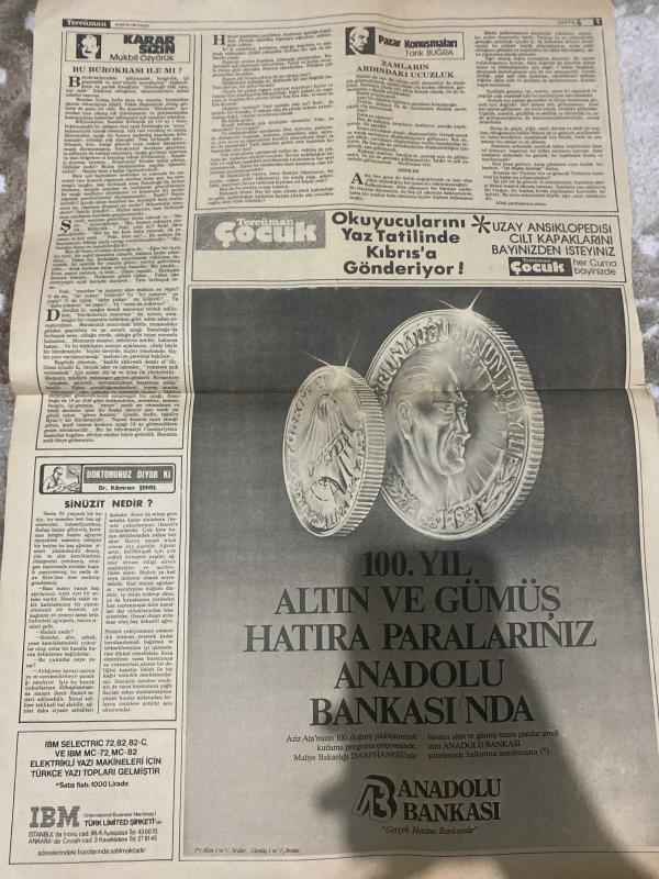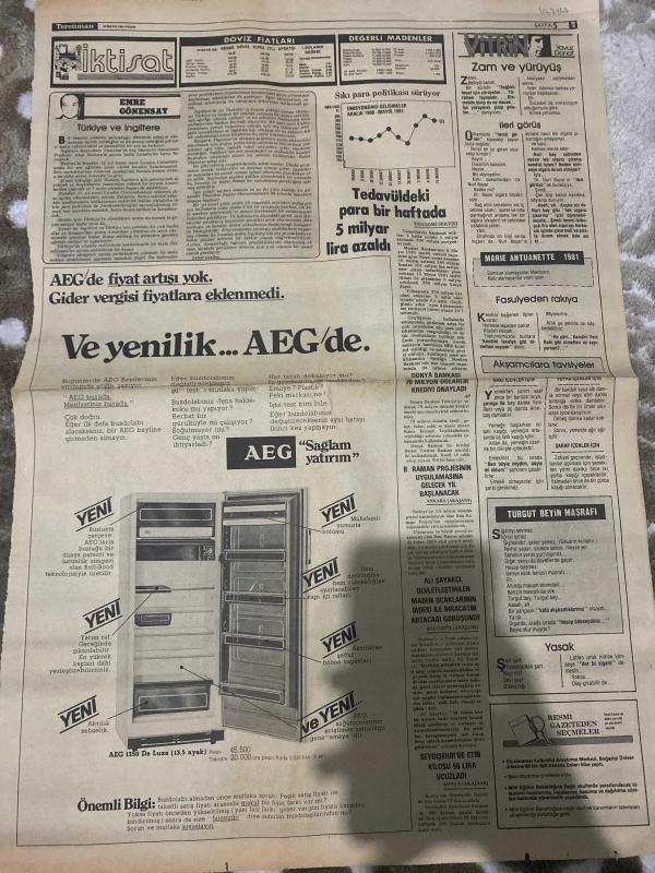 TERCÜMAN GAZETESİ - 24 MAYIS 1981 - SADECE 2 SAYFADIR -Emre Gönensay-Muhlis Özyörük-Tarık Buğra-Dr. Kamuran Şinel-Turgut Bey Türkiye ve İngiltere-Tedavüldeki para bir haftada 5 milyar lira azaldı-AEG’de fiyat artışı yok gider vergisi fiyatlara eklenmedi-Ve yenilik AEG’de-Zam ve yürüyüş-İleri görüş-Marie Antoinette 1981-Fasulyeden rakıya-Akşamcılara tavsiyeler-Turgut Bey’in masrafı-Bu bürokrasi ile mi-Zamların ardındaki ucuzluk-Sinüzit nedir-100. yıl altın ve gümüş hatıra paralarınız Anadolu Bankası’nda adlı eser, Kitap > Süreli Yayınlar > Gazeteler > Türkiye > Genel > Günlük kategorisinde İkinci El olarak satıştadır.