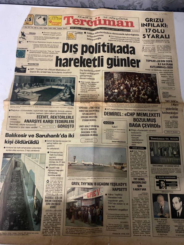 TERCÜMAN GAZETESİ - 25 NİSAN 1978 - SADECE 2 SAYFADIR -Ahmet Kabaklı - Rauf Tamer - Dr. F. Mason Sones Jr. - Corabarita - Sadettin Ünlü - Demirel - Türkeş - Bekir Aydın - Vasfi Bila - Dış politikada hareketli günler - Grizu infilakı 17 ölü 5 yaralı - Ecevit rektörlerle anarşiye karşı tedbirleri görüştü - Balıkesir ve Saruhanlı’da iki kişi öldürüldü - Grev THY’nin 18 uçağını Yeşilköy’e hapsetti - Kıbrıslı Türk askeri Kıbrıs’tan çekilmeyecektir - Anayasayı ihlal ve devlet başkanı - Esas olan kalp nakli değil kalp nakline ihtiyaç bırakmamak - Beklerken adlı eser, Kitap > Süreli Yayınlar > Gazeteler > Türkiye > Genel > Günlük kategorisinde İkinci El olarak satıştadır.