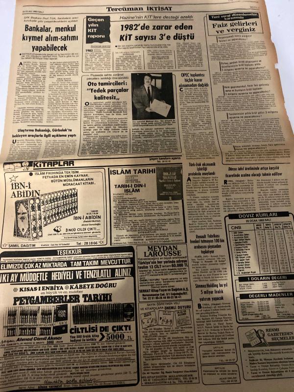 TERCÜMAN GAZETESİ - 25 OCAK 1983 - SAYI:54 - (Turkish Newspaper) - Sadece Arkalı Önlü Tek Yapraktır - Bir Devir Aydınlanıyor - Talat Paşa’nın Gurbet Hatıraları-Ahmet Cemil Akıncı-Ali Fethi Bey-Cemal Kutay-Enver Paşa-Hüseyin Hilmi Paşa-İbn-i Abidin-İsmail Hakkı Uzunçarşılı-Mahmud Es’ad-Mehmed Tahir Bey-Mehmet Alıcı-Ömer Rıza Paşa-Prof. Türk-Sait Paşa-Sultan Hamid-Sultan Reşad-Talat Paşa-Tevfik Paşa-Sultan Hamid servetini orduya bağışlıyor-Yıldız araştırması ve bir ilim adamının kederi-Müstakbel başkumandanın birlik ve kardeşlik çağrısı-Bankalar, menkul kıymet alım-satımı yapabilecek-1982’de zarar eden KİT sayısı 3’e düştü-Oto tamircileri: “Yedek parçalar kalitesiz,,-OPEC toplantısı hiçbir karar alınamadan dağıldı-Faiz gelirleri ve verginiz-Ulaştırma Bakanlığı, Gürbulak’ta bekleyen araçlarla ilgili açıklama yaptı-Renault Fabrikası frenleri tutmayan 100 bin arabasını piyasadan toplatıyor-Sönmez Holding bu yıl 5 milyar liralık yatırım yapacak-Gurbet hatıraları-Dördüncü bölüm: Arama ve avun adlı eser Türkçe dilindedir.