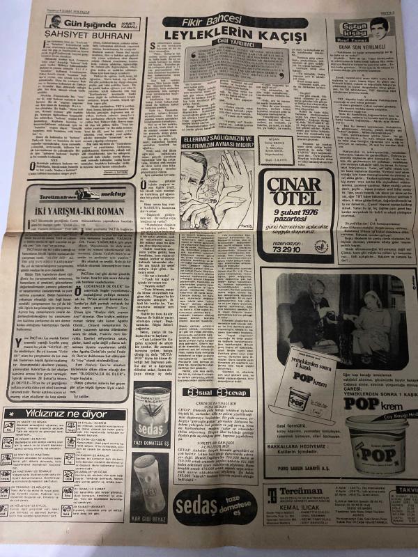 TERCÜMAN GAZETESİ - 8 ŞUBAT 1976 - SADECE 2 SAYFADIR -Prof. Savaş-Nixon-Ecevit-Muhammed Zekeriya-Celal Yardımcı-Ahmet Kabaklı-Rauf Tamer-Kemal Ilıcak Öldürenler de ölür-Yıllık geliri 150 bin lira olan esnafın vergisi düşecek-10 bin liraya kadar maaşta vergi iniyor-Fransa bize silah satmayı kabul etti-Rüşvet olayına Nixon Hollanda Prensi ve Japon partileri de bulaşmış-Guatemala dünyayı yardıma çağırıyor-Çağlayangil Bitisi ile gizli görüşmem gerekirse açıklarım-Şahsiyet buhranı-Fikir Bahçesi Leyleklerin kaçışı-Buna son verilmeli-İki yarışma iki roman-Ellerimiz sağlığımızın ve hislerimizin aynası mıdır-3 sual 3 cevap-Yıldızınız ne diyor adlı eser, Kitap > Süreli Yayınlar > Gazeteler > Türkiye > Genel > Günlük kategorisinde İkinci El olarak satıştadır.