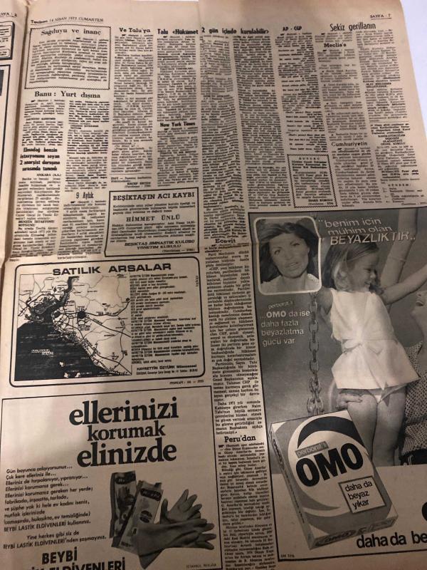 TERCÜMAN GAZETESİ - DOĞUM GÜNÜ HEDİYESİ (TURKISH NEWSPAPPER) - 14 NİSAN 1973 - SADECE DÖRT SAYFADIR -Süleyman Demirel-Bülent Ecevit-Suna San-Ali Rıza Alp-Rauf Tamer-Vural Savaş-Züleyha Münif-Aziz Ovalıoğlu-Kemal Turan-Refik Tagay-Sedat Taylan-Abdullah Malay-Fahri Şahimerden-Servet Şengün-Umut Taşkesen-Brian Birch-Talu Hükümet 1-2 gün içinde kurulabilir-Demirel Sıkıyönetim var diye seçimden vazgeçilemez-Cumhuriyetin 50 nci yılı için bir af tasarısı hazırlandı-AP CGP sanat koalisyonu Hüzzam makamında oldu-Korutürk ilk imzayı işçi meskenleri için attı-Banu Yurt dışına çocuk aldırmak için gittim-Milli eğitimimizde mecburi hizmet-Orhan Deniz’in ikinci bakanlığı-Sessiz istila-İyi günlere mi-Sözün kısası Buhran-En mühim-Milli piyango büyük bayram çekilişi 23 Nisanda-Bir Avrupa takımına karşı son yılların en farklı galibiyeti-En bilimsel ve yararlı antrenör Brian Birch-Beşiktaş Adana ile oynuyor-Milli takım İsviçre için 2 Mayısta kampa giriyor-Kayseride herşey şampiyonluk için-A Gücü PTT-Fener adlı eser, Kitap > Süreli Yayınlar > Gazeteler > Türkiye > Genel > Günlük kategorisinde İkinci El olarak satıştadır.