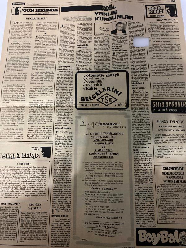 TERCÜMAN GAZETESİ - DOĞUM GÜNÜ HEDİYESİ (TURKISH NEWSPAPPER) - 17 ŞUBAT 1978 - SADECE TEK YAPRAKTIR -Bülent Ecevit-Nihat Erim-Muhammed Ali-Rauf Tamer-Ahmet Kabaklı-Züleyha Münif-Şefik Uyguner-Sadettin Çulcu-Orhan Tahsin-Ara Güler-Öngüt-Kemal Ilıcak-Kemerleri sıkma dönemi başladı-Tehlike henüz geçmemiştir-Felçliler menisküslüler parmakların ucu ile tedavi ediliyor-Bıçaksız ameliyat-Doğuda deprem aralıklı sürüyor-Çukobirliğin bekçisi öldürüldü-Genç boksör M Aliyi 15 raund hırpaladı-Muhammed Ali büyük unvanını kaybetti-Tedbirler piyasaya nasıl yansıyacak-Yeni tedbirler-Yanlış kurşunlar-Umut ve onur-Gün ışığında-Sözün kısası-3 sual 3 cevap-Gerçek usag-Gerçek solcu-TSE belgelerini devlet adına verir-4üncü Leventte kaloriferli asansörlü satılık apartman dairesi-Cihangirde deniz manzaralı kaloriferli satılık daireler-Vefat-Satılık apartman】 adlı eser Türkçe dilindedir.