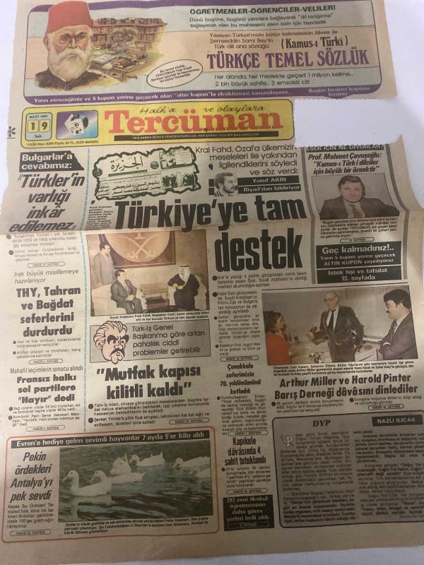 TERCÜMAN GAZETESİ - DOĞUM GÜNÜ HEDİYESİ (TURKISH NEWSPAPPER) - 19 MART 1985 - SADECE TEK YAPRAKTIR -Şemsedin Sami-Turgut Özal-Kral Fahd-Yusuf Akın-Prof Mehmet Çavuşoğlu-Arthur Miller-Harold Pinter-Kenan Evren-Ahmet Kabaklı-Rauf Tamer-Dr D Muzaffer Atamanoğlu-Dr Seyfi Basa-Bulgarlar’a cevabımız Türkler’in varlığı inkâr edilemez-Türkiye’ye tam destek-Mutfak kapısı kilitli kaldı-THY Tahran ve Bağdat seferlerini durdurdu-Fransız halkı sol partilere Hayır dedi-Pekin ördekleri Antalya’yı pek sevdi-Kapıkule davasında 4 şahit tutuklandı-292 yeni ilkokul öğretmeninin daha görev yerleri belli oldu-Doktorlarımız-Yüzlerce ameliyat içinde ikisini hiç unutamam-Eşimin dalgınlığı bir hayat kurtarmıştı-Gün Işığında-Sessiz çoğunluk-Tercüman Çocuk-Türkçe Temel Sözlük-Kamusı Türki-Öğretmenler Öğrenciler Veliler-Yarın vereceğimiz 5 kupon yerine geçecek olan Altın kupon yayınlıyoruz-Geç kalmadınız-İstek fişi ve tafsilat 10 sayfada-Türkiye’nin en çok satanı-Karakusak adlı eser Türkçe dilindedir.