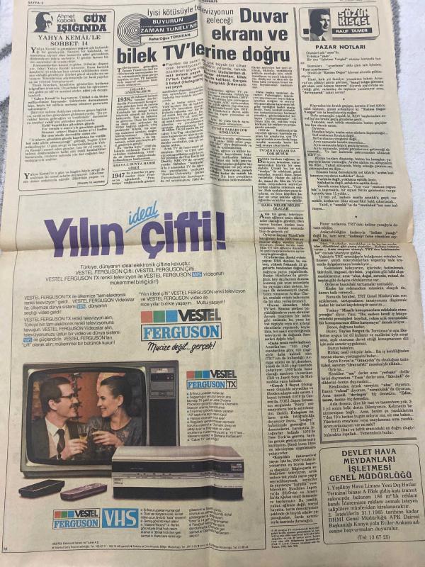 TERCÜMAN GAZETESİ - DOĞUM GÜNÜ HEDİYESİ (TURKISH NEWSPAPPER) - 20 OCAK 1985 - SADECE TEK YAPRAKTIR -Turgut Özal-Kipriyanu-Denktaş-Musavi-Ali İhsan Göğüş-Nazlı Ilıcak-Ahmet Kabaklı-Yahya Kemal-Reha Oğuz Türkkan-Rauf Tamer-Sıvgın-KKTC güçleniyor-Kipriyanu nun tutumunu dünya tepki ile karşıladı-Kıbrıyanun Türk refakatçisi-Denktaş ağırlığını koydu-Saf altından ilaç yapıyoruz-Kanser tedavisinde başarı ile kullanılıyor-Başbakan Musavi bugün Ankara da-Türkiye İran ilişkilerinden canlandırılacak-Başbakan Özal dün de tapu tahsis belgesi dağıttı-6 ayda 100 bin aile konut sahibi olacak-Politikasız reklamsız TV kanalları hizmete giriyor-Vergi iadesi yüzde 20 ye çıkarılıyor-Özdağlar Şakrak Sokak taki yeni evine taşındı-Milli Piyango dün çekildi-Oğluma senin adını vermiştim O ad defterden kayboldu-Duvar ekranı ve bilek TV lerine doğru-İyisi kötüsüyle televizyonun geleceği-Yılın ideal çifti-Vestel Ferguson Mucize değil gerçek-Devlet Hava Meydanları İşletmesi Genel Müdürlüğü-Tercüman Piyango Dördüncü, Kemal ılıcak tarafından kaleme alınmıştır. TERCÜMAN GAZETESİ - DOĞUM GÜNÜ HEDİYESİ (TURKISH NEWSPAPPER) - 20 OCAK 1985 - SADECE TEK YAPRAKTIR -Turgut Özal-Kipriyanu-Denktaş-Musavi-Ali İhsan Göğüş-Nazlı Ilıcak-Ahmet Kabaklı-Yahya Kemal-Reha Oğuz Türkkan-Rauf Tamer-Sıvgın-KKTC güçleniyor-Kipriyanu nun tutumunu dünya tepki ile karşıladı-Kıbrıyanun Türk refakatçisi-Denktaş ağırlığını koydu-Saf altından ilaç yapıyoruz-Kanser tedavisinde başarı ile kullanılıyor-Başbakan Musavi bugün Ankara da-Türkiye İran ilişkilerinden canlandırılacak-Başbakan Özal dün de tapu tahsis belgesi dağıttı-6 ayda 100 bin aile konut sahibi olacak-Politikasız reklamsız TV kanalları hizmete giriyor-Vergi iadesi yüzde 20 ye çıkarılıyor-Özdağlar Şakrak Sokak taki yeni evine taşındı-Milli Piyango dün çekildi-Oğluma senin adını vermiştim O ad defterden kayboldu-Duvar ekranı ve bilek TV lerine doğru-İyisi kötüsüyle televizyonun geleceği-Yılın ideal çifti-Vestel Ferguson Mucize değil gerçek-Devlet Hava Meydanları İşletmesi Genel Müdürlüğü-Tercüman Piyango Dördüncü adlı eser Türkçe dilindedir.