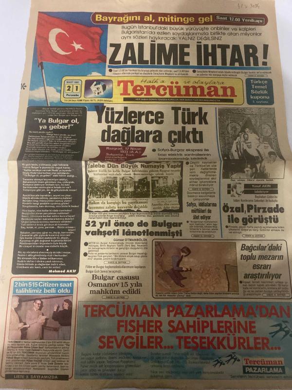 TERCÜMAN GAZETESİ - DOĞUM GÜNÜ HEDİYESİ (TURKISH NEWSPAPPER) - 21 MART 1985 - SADECE TEK YAPRAKTIR -Yusuf Akın-Turgut Özal-Kral Fahd-Mohamed Akif-Günvar Otmanbölük-Arthur Miller-Harold Pinter-Ahmet Kabaklı-Rauf Tamer-Ruhnaz Akyir-Dr Yıldırım Aktuna-Dr Atilla Gencoglu-Yüzlerce Türk dağlara çıktı-Zalime ihtar-Bayrağını al mitinge gel-Özal Pirzade ile görüştü-Türkiye’ye tam destek-Milyarlık pazarlık-İlk tabii gaz santralının temeli atıldı-Türkiye bize karışamaz-52 yıl önce de Bulgar vahşeti lanetlenmişti-Bulgar casusu Osmanov 15 yıla mahkum edildi-Bağcılar’daki toplu mezarın esrarı araştırılıyor-Tercüman Pazarlama’dan Fisher sahiplerine sevgiler teşekkürler-Gün Işığında-Doktorlarımız-Benim en büyük hatıram Bakırköy’dür-Sorun Gemi işletmeciliği Çözüm Lam Bortrans-Türkiye Kızılay Derneği Genel Müdürlüğünden-Teşekkür-Türkçe Temel Sözlük-Kamusı Türki-Türkiye’nin en çok satanı-Karakusak adlı eser Türkçe dilindedir.