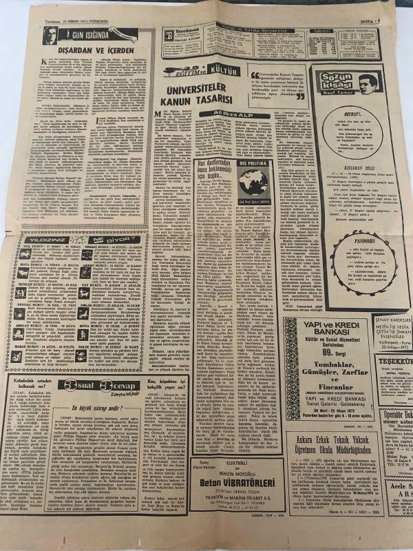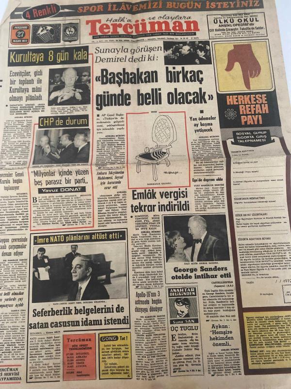 TERCÜMAN GAZETESİ - DOĞUM GÜNÜ HEDİYESİ (TURKISH NEWSPAPPER) - 27 NİSAN 1972 - SADECE TEK YAPRAKTIR -Süleyman Demirel-Bülent Ecevit-Yavuz Donat-George Sanders-Nahit İmre-Kenan Akın-Rauf Tamer-Ali Rıza Alp-Ord. Prof. Sadi Irmak-Züleyha Münif-Suna SAN-Şenay Kardeşler-Metin ile Vedia Çetin ile Umran Evlendiler-Kurultaya 8 gün kala-CHP’de durum-Sunay’la görüşen Demirel dedi ki Başbakan birkaç günde belli olacak-Emlâk vergisi tekrar indirildi-Ege’de deprem oldu-George Sanders otelde intihar etti-İmre NATO planlarını altüst etti-Seferberlik belgelerini de satan casusun idamı istendi-Üniversiteler Kanun Tasarısı-Rus dostlarından hiç beklemediği bir ültimatom aldı-Dışardan ve İçerden-Ulaşım ve Haberleşme-Yıldızınız Ne Diyor-3 sual 3 cevap-Ankara Erkek Teknik Yüksek Öğretmen Okulu Müdürlüğünden-Yapı ve Kredi Bankası Kültür ve Sanat Hizmetleri Serisinden 89 sergi-Tombaklar Gümüşler Zarflar ve Fincanlar-Beton Vibratörleri-Operatör Doktor Mehmet Kandeğer-Acele Servis-Herkese Refah Payı-Sözün Kısas adlı eser, Kitap > Süreli Yayınlar > Gazeteler > Türkiye > Genel > Günlük kategorisinde İkinci El olarak satıştadır.