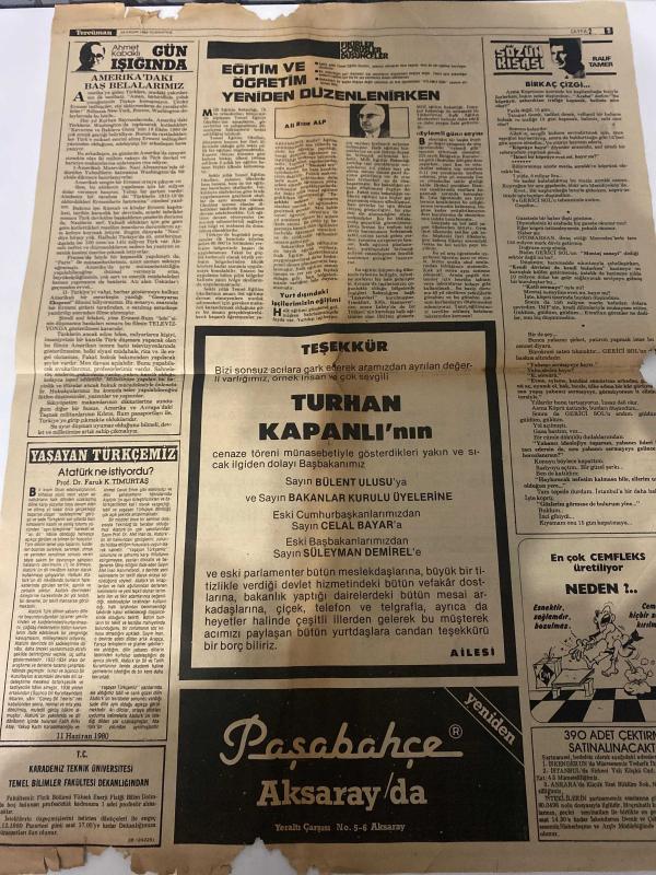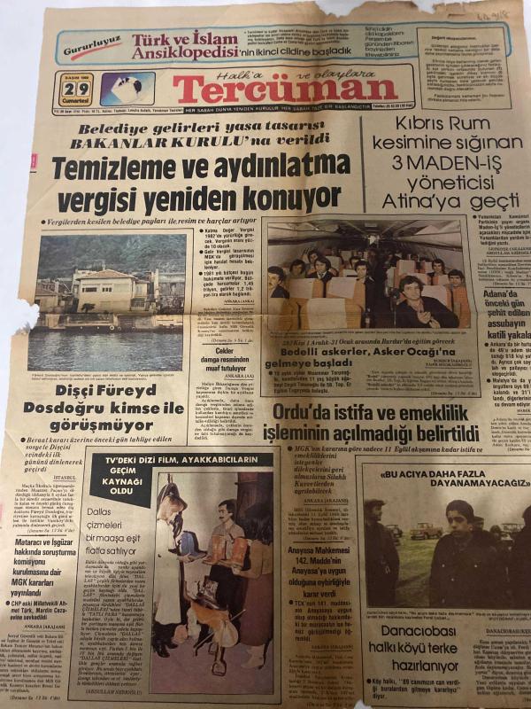 TERCÜMAN GAZETESİ - DOĞUM GÜNÜ HEDİYESİ (TURKISH NEWSPAPPER) - 29 KASIM 1980 - SADECE TEK YAPRAKTIR -Bülent Ulusu-Celal Bayar-Süleyman Demirel-Turhan Kapanlı-Ahmet Kabaklı-Rauf Tamer-Ali Rıza Alp-Abdullah Azizoğlu-Abdullah Necoğlu-Temizleme ve aydınlatma vergisi yeniden konuyor-Belediye gelirleri yasa tasarısı Bakanlar Kurulu’na verildi-Kıbrıs Rum kesimine sığınan 3 MADEN-İŞ yöneticisi Atina’ya geçti-Dişçi Füreyya Dosdoğru kimse ile görüşmüyor-Bedelli askerler Asker Ocağı’na gelmeye başladı-Ordu’da istifa ve emeklilik işleminin açılmadığı belirtildi-Danacıobası halkı köyü terke hazırlanıyor-TV’deki dizi film ayakkabıcıların geçim kaynağı oldu-Anayasa Mahkemesi 142 Maddenin Anayasaya uygun olduğuna oybirliğiyle karar verdi-Eğitim ve öğretim yeniden düzenlenirken-Amerika’daki baş belalarımız-Yaşayan Türkçemiz Atatürk istiyor mu-Teşekkür-Paşabahçe Aksaray’da-En çok Cemfleks üretiyor Neden-Türk ve İslam Ansiklopedisi’nin ikinci cildine başladık-T C Karadeniz Teknik Üniversitesi Temel Bilim adlı eser Türkçe dilindedir.