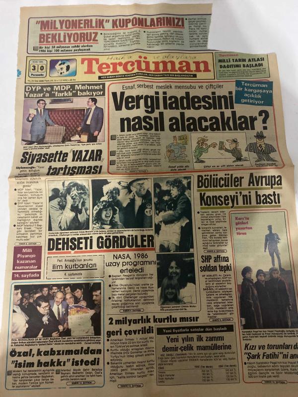 TERCÜMAN GAZETESİ - DOĞUM GÜNÜ HEDİYESİ (TURKISH NEWSPAPPER) - 30 OCAK 1986 - SADECE TEK YAPRAKTIR -Mehmet-Reagan-Crista McAuliffe-Özal-Bedrettin Dalan-Emrah Kabaklı-Armağanlı-Rauf Tamer-Turgut Güngör-Mehmet Kaplan-Kenan Evren-Aydın Sevinç-Murat Kekeciler-İmdat Kahirli-Verdi iadesini nasıl alacaklar-Siyasette Yazar tartışması-Dehşeti gördüler-İlim kurbanları-NASA 1986 uzay programını erteledi-Bölücüler Avrupa Konseyini bastı-SHP affına soldan tepki-2 milyarlık kurtlu mısır geri çevrildi-Yeni yılın ilk zammı demir çelik mamullerine-Özal kabzımdan isim hakkı istedi-Genel af konusu-Tiyatro roman ve sinema-Anarşiye prim mi-Birimizim derdi hepimizin derdi-Tercümanın tenkiti-Hamleye devam-Milyonerlik kuponlarınızı bekliyoruz-Milli tarih atlası dağıtımı başladı-Tercüman bir kargaşaya açıklık getiriyor-Kız ve torunları Şark Fatihini andı-Keçecilere teşekkürler-Özlenen ses-Mukaddesin korunması-Okuyucuların forumu-Çinko kurşun metal sanayi ASden hurda alüminyum ve plastik satılacaktır-Çocuğunuzu adlı eser Türkçe dilindedir.