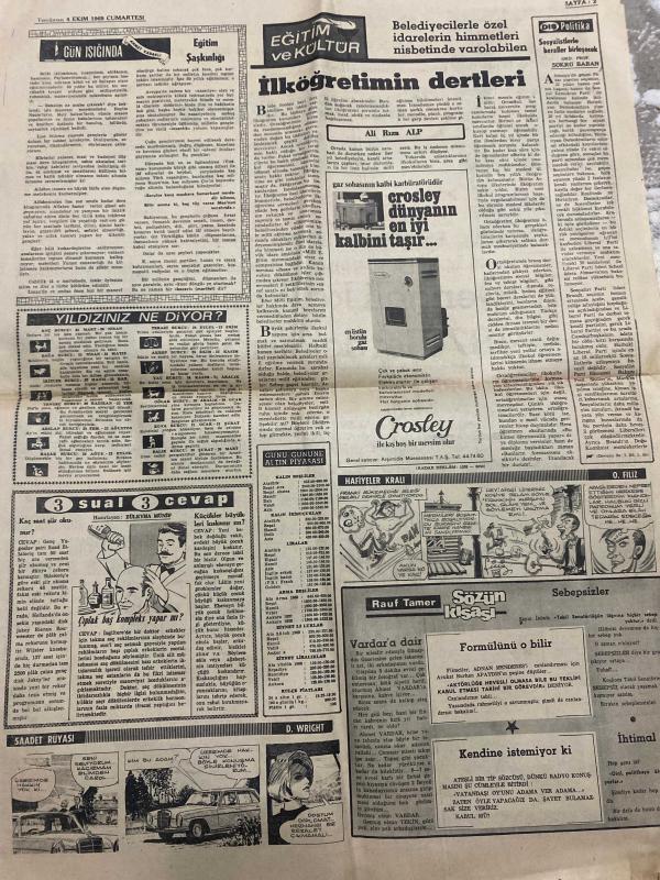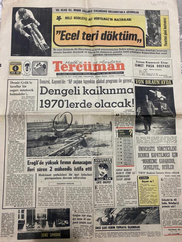 TERCÜMAN GAZETESİ - DOĞUM GÜNÜ HEDİYESİ (TURKISH NEWSPAPPER) - 4 EKİM 1969 - SADECE TEK YAPRAKTIR -Ali Hürriyılmaz-Süleyman Demirel-Refik Sönmez-Sabahattin Can-Suna San-Von Braun-Şükrü Baban-Ali Rıza Alp-Züleyha Münif-Rauf Tamer-Doğan Nadi-Adnan Menderes-O Filiz-D Wight-Ecel teri döktüm-Dengeli kalkınma 1970lerde olacak-Demir Çelikte taraflar bir asgari müşterek bulmalıdır-Ereğlide yüksek fırının donacağını ileri süren 2 mühendis istifa etti-Üniversite yöneticileri dernek kapatılması için mahkeme kararıdır saygılıyız dediler-Ünlü şaki Kerim Topkaya öldürüldü-İlköğretimin dertleri-Crosley dünyanın en iyi kalbini taşır-Gün Işığında-Eğitim ve Kültür-Yıldızınız ne diyor-3 sual 3 cevap-Hafiyeler Kralı-Sözün Kısası Bir Dakika Doğan Nadi için-Formülünü o bilir-Kendine istemiyor ki-Sebepsizler-Saadet Rüyası} adlı eser, Kitap > Süreli Yayınlar > Gazeteler > Türkiye > Genel > Günlük kategorisinde İkinci El olarak satıştadır.