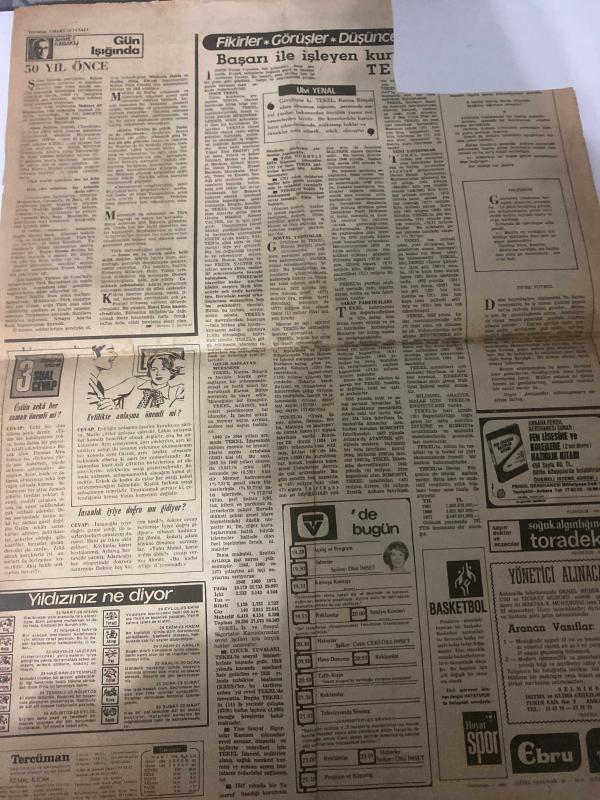 TERCÜMAN GAZETESİ - DOĞUM GÜNÜ HEDİYESİ (TURKISH NEWSPAPPER) - 5 MART 1974 - SADECE TEK YAPRAKTIR -Oktay Cebeci-Sermettin Öztürk-Sokrann Mihal-Vilma Hagopian-Teki Doğan Beller-Mose Uzayel-Mehmet İnan-Hatice İnan-Mustafa L Cebeci-Yıldız Bengi-Gönül Ahen-Ahmet Şimşek-Sevim Ekşi-Ahmet Kabaklı-Kemal Ilıcak-Ülkü Yenal-Ümit İmset-Çetin Çeki İmset-FACİA VE GERÇEKLER-Teknik arıza mı sabotaj mı-42 Türk kurbanın 31i İstanbuldan-Ölenlerin yakınları cesetleri ayırmak için Parise akın ediyor-Komisyon af için toplantıya çağırıldı-ALTIN KALEM için ikinci yarışma yarın-Kurbanlardan arta kalan parçalar torbalarda taşınıyor-Gün Işığında-50 Yıl Önce-Fikirler Görüşler Düşünceler-Başarı ile işleyen kurumlar-Yıldızınız ne diyor-Basketbol-Hayat Spor-Ebru-Yönetici Alınacak-Soğuk algınlığına toradol-de bugün adlı eser, Kitap > Süreli Yayınlar > Gazeteler > Türkiye > Genel > Günlük kategorisinde İkinci El olarak satıştadır.