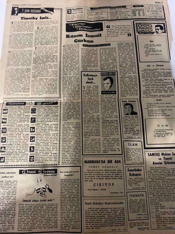TERCÜMAN GAZETESİ - DOĞUM GÜNÜ HEDİYESİ (TURKISH NEWSPAPPER) - 6 MART 1972 - SADECE TEK YAPRAKTIR -Timothy İmiş-Kazım İsmail Gürkan-Hilmi Ziya Ülken-Prof Dr Vural Savaş-Rauf Tamer-Suna San-Züleyha Münif-Samet Ağaoğlu-Kemal Ilıcak-Marmara battı-Marmara Haliçte yandı-125 Milyonluk gemi hıçkırıklar arasında sulara terkedildi-Emekli işçiler 1 ocakta zamlı maaş alacak-Türkiyede Türk musikisi-Kalkınmaya layık olmak-Marmarada bir ada-Fenerbahçe Kebapçısı-İzmit Belediye Başkanlığından-Teşekkür-Kaza içinde kaza oldu 5 kişi öldü-Anahatar deliğinden-Acı kaderine boyun eğdi-Karşılama-Sözün kısası-Fikirler görüşler düşünceler-Gün ışığında-Yıldızınız ne diyor-3 sual 3 cevap-Jimnastik sıhhate faydalı mıdır-İlan-Samtaş Makine ve Ticaret Anonim Şirketi】 adlı eser Türkçe dilindedir.