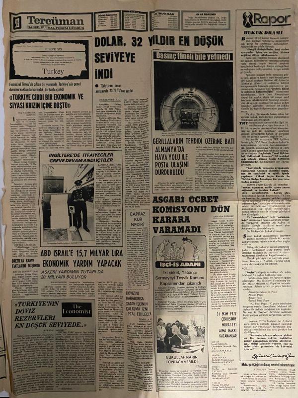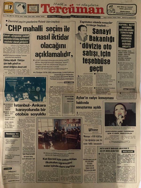 TERCÜMAN GAZETESİ - DOĞUM GÜNÜ HEDİYESİ (TURKISH NEWSPAPPER) - 7 ARALIK 1977 - SADECE DÖRT SAYFADIR -Bülent Ecevit-Alparslan Türkeş-Yavuz Donat-Sedat Sertoglu-Bilgen Aybar-Nazlı Ilıcak-Ahmet Kabaklı-Yılmaz Altug-Rauf Tamer-Züleyha Münif-Raymond Cartier-Osman Kibar-Ender Korkut-Erol Göze-Kemal Ilıcak-Şükrü Aybar-Mustafa Celalettin Paşa-Enver Paşa-Nuri Fuat Paşa-Nurullah Narin-CHP mahalli seçim ile nasıl iktidar olacağını açıklamalıdır-Sanayi Bakanlığı dövizle oto satışı için teşebbüse geçti-Kapalı NATO savunma bakanlarına Türkiye’nin ambargo yüzünden düştüğü durumu anlattı-İstanbul Ankara karayolunda bir otobüs soyuldu-Aybarın radyo konuşması hakkında soruşturma açıldı-Eurovision şarkı yarışması için 12 eser finale kaldı-Kat ilavesi için çatısı açılan ilkokulun öğrencileri sular içinde ders yapıyor-Milliyetçilik ideolojiden daha kuvvetlidir-İkinci Dünya Savaşı-20 yüzyılın en büyük çılgınlığı-Türkiye ciddi bir ekonomik ve siyasi krizin içine düştü-Dolar 32 yıldır en düşük seviyeye indi-, Kemal Ilıcak tarafından kaleme alınmıştır. TERCÜMAN GAZETESİ - DOĞUM GÜNÜ HEDİYESİ (TURKISH NEWSPAPPER) - 7 ARALIK 1977 - SADECE DÖRT SAYFADIR -Bülent Ecevit-Alparslan Türkeş-Yavuz Donat-Sedat Sertoglu-Bilgen Aybar-Nazlı Ilıcak-Ahmet Kabaklı-Yılmaz Altug-Rauf Tamer-Züleyha Münif-Raymond Cartier-Osman Kibar-Ender Korkut-Erol Göze-Kemal Ilıcak-Şükrü Aybar-Mustafa Celalettin Paşa-Enver Paşa-Nuri Fuat Paşa-Nurullah Narin-CHP mahalli seçim ile nasıl iktidar olacağını açıklamalıdır-Sanayi Bakanlığı dövizle oto satışı için teşebbüse geçti-Kapalı NATO savunma bakanlarına Türkiye’nin ambargo yüzünden düştüğü durumu anlattı-İstanbul Ankara karayolunda bir otobüs soyuldu-Aybarın radyo konuşması hakkında soruşturma açıldı-Eurovision şarkı yarışması için 12 eser finale kaldı-Kat ilavesi için çatısı açılan ilkokulun öğrencileri sular içinde ders yapıyor-Milliyetçilik ideolojiden daha kuvvetlidir-İkinci Dünya Savaşı-20 yüzyılın en büyük çılgınlığı-Türkiye ciddi bir ekonomik ve siyasi krizin içine düştü-Dolar 32 yıldır en düşük seviyeye indi- adlı eser Türkçe dilindedir.