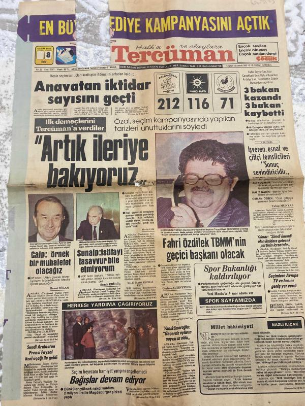 TERCÜMAN GAZETESİ - DOĞUM GÜNÜ HEDİYESİ (TURKISH NEWSPAPPER) - 8 KASIM 1983 - SADECE TEK YAPRAKTIR -Turgut Özal-Fahri Özdilek-Remzi Dilan-Mehmet Işık-Ceyhan Altınyelek-Yankıoğlu-Nazlı Ilıcak-Ahmet Kabaklı-Rauf Tamer-Faruk Nafiz Çamlıbel-Fahri Korutürk-Feyzi Gürsan-Bülent Ecevit-Fahri Sabri Korutürk-Faruk Gürler-Nimet Abla-En büyük hediye kampanyasını açtık-Anavatan iktidar sayısını geçti-Artık ileriye bakıyoruz-Fahri Özdilek TBMM nin geçici başkanı olacak-Spor Bakanlığı kaldırılıyor-Spor sayfamızda-Herkesi yardıma çağırıyoruz-Bağışlar devam ediyor-Suudi Arabistan Prensi Faysal özel uçağı ile geldi-Başbakanlık Dev Arşivi 40 yaşında-Buna ne buyurulur-Bulgaristan daki Türkler-Belediye Başkanlığının açıklaması-Denizcilik Bankası TAO şehir hatları işletmesi müdürlüğünden ilan-Hava Durumu-Televizyonda bugün-Birimizin Derdi Hepimizin Derdi-Sözün Kısası-Gün Işığında-Görüşler Düşünceler-Zaferin asıl mimarı adlı eser, Kitap > Süreli Yayınlar > Gazeteler > Türkiye > Genel > Günlük kategorisinde İkinci El olarak satıştadır.