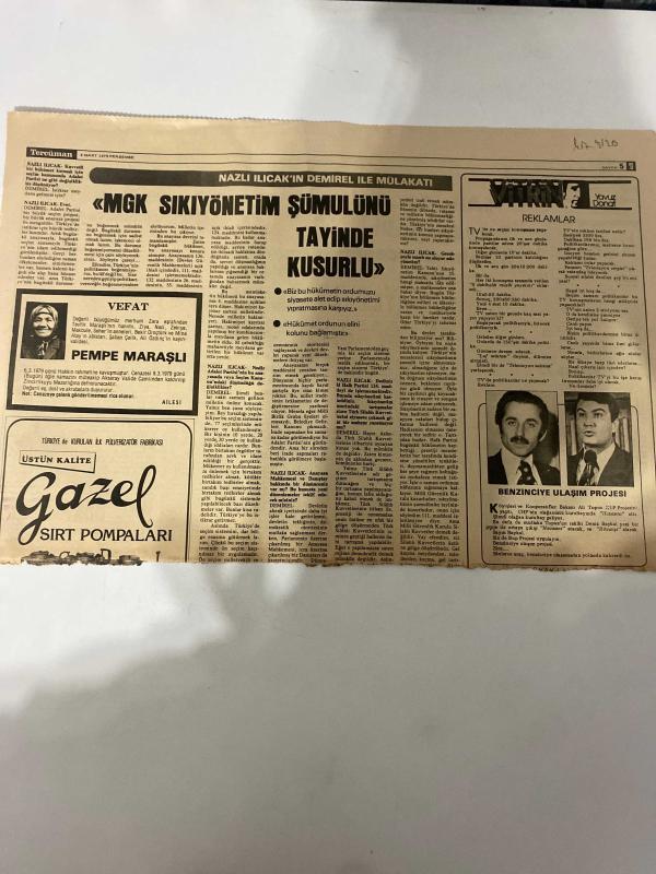 TERCÜMAN GAZETESİ - DOĞUM GÜNÜ HEDİYESİ (TURKISH NEWSPAPPER) - 8 MART 1979 - SADECE TEK YAPRAKTIR -Nazlı Ilıcak-Süleyman Demirel-Pembe Maraşlı-Yaşar Kara-Bülent Ecevit-Rıza Pehlevi-Bazergan-Butto-Ali Topuz-Deniz Baykal-MGK sıkıyönetim şümulünü tayinde kusurlu-Vefat-Pembe Maraşlı-Gazel Siirt Pompaları-Şah Taht benimdir bırakmayacağım-Yüksek Mahkeme Butto hakkındaki idam cezasını yerinde buldu-Haddam Yemen’deki çatışmayı ABD kışkırtıyor-NATO’da görevi bir kadının çok önemli bazı belgelerle Doğu Almanya’ya sığındığı doğru-İngiltere Genelkurmay Başkanı Ankara’ya geldi-Çağlayangil Eurovision’dan çekilme kararı her iki tarafta da rahatsızlık yaratmıştır-Benzinciye ulaşım projesi-Savunma hakkı verilmeyen Cemiloğlu 4 yıl sürgün cezasına çarptırıldı-Çin birlikleri geri çekilirken çatışmalar yine devam ediyor-Vitrin Reklamlar-Sözün Kısası Gün Işığında-Dış Haberler adlı eser Türkçe dilindedir.