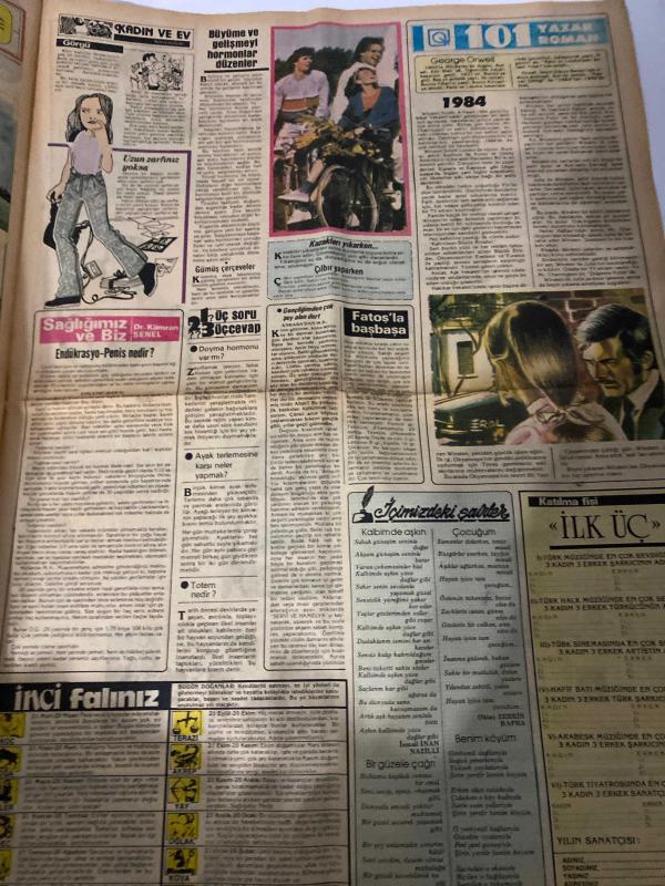TERCÜMAN GAZETESİ İNCİ İLAVESİ DOĞUM GÜNÜ HEDİYESİ - 12 NİSAN 1984 - 4 SAYFADIR -Tekin Akmansoy-Leman Cidamlı-Kemal Yıldız-Behice Sungur-Otker Koç-Behije Aksoy-Ahmet-Prenes Caroline-Grace-Birhan Şimşek-Nermin Denkar-İlhan Engin-Sabahattin Işık-George Orwell-Dr. Kıvılcım Şenel-İlhan Namlı-Zerrin Bayra-Kartal Tibet-Erol Büyükburç-Güner Tezer-Ziya Taşkent-İbrahim Şirin-Öztürk Serengil-Özay Gönlüm-Belks Akkale-Victoria Principal-Patrick Duffy-Linda Gray-Larry Hagman Yarının anaları zevkle şevkle yetişiyor-Sen ne güzel bulursun gezsen Anadolu’yu-Çocuğum kız olursa adını Grace koyacağım-Bebekler 7 aylıkken matematiği 11 aylıkken okumayı öğrenebilir-Seninle Yaşamak-İki Aşk Arasında-Kadın ve Ev-Büyüme ve gelişmeyi hormonlar düzenler-Sağlığımız ve Biz-Endikasyon-Penis nedir-İçimizdeki satırlar-Kalbimde aşkın-Çocuğum-Bir güzele çağrı-Fatoş’la başbaşa-Kel başa sırma peruk-Halay’ı sevdim-Hepinizi öldürüp Dallas efsanesine son vereceğim Keloğlan-Kırklar-Pasaklıgiller-Bay Ortadirek Çizen-Ziya Şafa adlı eser, Kitap > Süreli Yayınlar > Gazeteler > Türkiye > Genel > Günlük kategorisinde İkinci El olarak satıştadır.