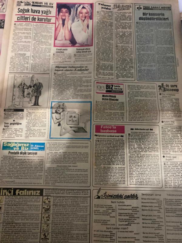TERCÜMAN GAZETESİ İNCİ İLAVESİ DOĞUM GÜNÜ HEDİYESİ - 16 ŞUBAT 1984 - 4 SAYFADIR -Zuhal Yorgancıoğlu-Füsun Öztaş-Selahattin Alpay-Sibel Savacı-Arif Tunç-İpek Pınar-Dr. Kırman Şenel-Neval Barlas-Filiz Özten-Linda Evans-Joan Collins-Victoria Principal-Larry Hagman-Naci Arıkan-Philippe Noiret-Sabine Azéma 1984 Modası-Türk Zevkinin Uzakdoğu Gezisi-Japonlar Moda Sektörüne de El Attı-Tayland Dansözlerinin Başlığı Gelin Başı Oldu-Kış Ortasında Mayolu Yaz-Sevmek mi Yaşamak mı-Kadın ve Ev-Soğuk Hava Yağlı Ciltleri de Kurutur-Elmalı Pasta Yaparken-Yumuşak Ellere Sahip Olmak İçin-Sağlığımız ve Biz-Prostatik Düşük Tansiyon-Bir Konserin Düşündürdükleri-Dallas ve Hanedan Olimpiyatı-Savaş ve Aşk-Filiz Özten Film Şirketi Kurdu-İspanyollar Ankara Gemisi’ne Ödül Verdi adlı eser, Kitap > Süreli Yayınlar > Gazeteler > Türkiye > Genel > Günlük kategorisinde İkinci El olarak satıştadır.