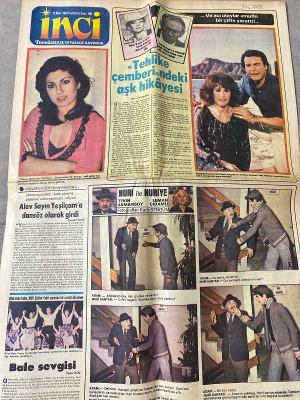 TERCÜMAN GAZETESİ İNCİ İLAVESİ DOĞUM GÜNÜ HEDİYESİ - 20 MART 1984 - 4 SAYFADIR -Bedia Akartürk-Kemal Güçer-Meral Zeren-Silvie Vartan-Tekin Akmansoy-Leman Cıdamlı-Oktay Tybar-Suna Korad-Gökhan Güney-Neşe Aksoy-Bülün Nazlıhan-Pearl S. Buck-Nevil Barlas-Dr. Kamiran Şenel-Memduh Şevket Esendal-Nevval Barlas-Soner Özbirlen-Gregory Peck-Stirling Hayden-Robert Vaughn-Mehmet Onul-Ziya Şafak-Yener Baras Meral Zeren adı Yeşilçam’da çiçek açtı-Kültür Vakfı Bedia Akartürk’ü yılın sanatçısı seçti-Silvie Vartan sağlık ve güzellik hocası oluyor-Hırçın Kalpler-İki aşk arasında-Ayaşlı ve Kiracıları-Mavi ve Gri-Halay’la özümüze döndük-Memleket hasreti-Kadın ve Ev-Sağlığımız ve Biz-Fatoş’la başbaşa-İçimizdeki satırlar-İnci Falınız-Yazar Roman Keloglan-Deli Cabbar-Çizen Ziya Şafak-Pasaklıgiller-Bay Ortadirek adlı eser Türkçe dilindedir. Eserin içeriğinde Türkçe dilinde bölümlere de yer verilmektedir.