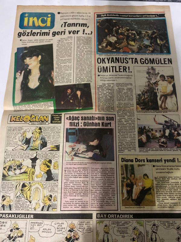 TERCÜMAN GAZETESİ İNCİ İLAVESİ DOĞUM GÜNÜ HEDİYESİ - 23 MART 1984 - 4 SAYFADIR -Emel Sayın-Zeki Müren-Ajda Pekkan-Türkan Şoray-Bedia Akartürk-Yıldız Kenter-Nuri Sesigüzel-Cüneyt Gökçer-Barış Manço-Nuri ile Nuriye-Leman Akıman-Kartal Tibet-Aka Gündüz-Pearl S. Buck-Birsen Emgen-Nevin Gülün-Cüneyt Gökçer-Nesrin Baltaş-Dr. Kimran Şenel-Fatoş-Berna Tunalı-Günhan Kurt-Diana Dors-Tanrım gözlerimi geri ver-İlk 3-Bir lisan bir insan-Sevmek mi yaşamak mı-İki aşk arasında-Dikkat başarı hırsı sizi güzellikten düşürebilir-Greyfurt vücudun direncini artırıyor-Tahta kaşıklar yemeklerin lezzetini artırır-Çelik tenceredeki minik lekeler-Sözün özü-Ergenlik sivilceleri gençlerin çoğunun derdidir-Dikmen Yıldızı-Sağlığımız ve biz-Peklik derdi-Üç soru üç cevap-Kalp hastalığı öksürük yapar mı-İçimizdeki satırlar-Arzum-Mehmetçik-Fatoş’la başbaşa-Boşanmak istiyorum-O pastele küstüm-Tanrım gözlerimi geri ver-Okyanusta gömülen ümitler-Ağaç sanatının son fidanı Günhan Kurt-Diana Dors kanseri yendi adlı eser, Kitap > Süreli Yayınlar > Gazeteler > Türkiye > Genel > Günlük kategorisinde İkinci El olarak satıştadır.