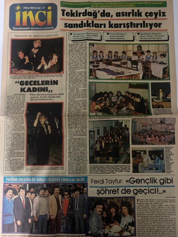 TERCÜMAN GAZETESİ İNCİ İLAVESİ DOĞUM GÜNÜ HEDİYESİ - 24 NİSAN 1984 - 4 SAYFADIR -Yüksel Uzel-Muzaffer Akgün-Bahadır Aksoy-Ferdi Tayfur-Kemal Yıldız-Berhan Şimşek-Sevim Ozun-Muhittin Ayan-Müjhit Fışınoğlu-Sabahat Işık-Pearl S. Buck-Neval Barlas-Nikolai Gogol-Belma Aksun-Dr. Kırman Şenel-Gülden Sağır-Tahsin Balaban-Tekin Akmansoy-Leman Cıdamlı-Ziya Şafak-Muhsin Tanratan Tekirdağ’da Asırlık Çeyiz Sandıkları Karıştırılıyor-Gecelerin Kadını-Ferdi Tayfur Gençlik Gibi Şöhret de Geçici-Kırıp Döken Çocuklar-Seninle Yaşamak-İki Aşk Arasında-Kadın ve Ev-Yürüyüşünüze Dikkat-Saçlarınıza Kendiniz Şekil Verebilirsiniz-Ölü Canlar-Sağlığımız ve Biz-Bel Ağrısı-Fatoş’la Başbaşa-İçimizdeki Saatler-Sevemez Oldum-Annem-Öğretmenlerin de Öğrenecekleri Vardır-Noktalı Virgül Olduk-Elvis’i Ben Öldürmedim-Gül Bahçesi Keloglan-Yazan ve çizen: Ziya Şafak-Pasaklıgiller-Bay Ortadirek-Çizer: adlı eser Türkçe dilindedir. Eserin içeriğinde Türkçe dilinde bölümlere de yer verilmektedir.