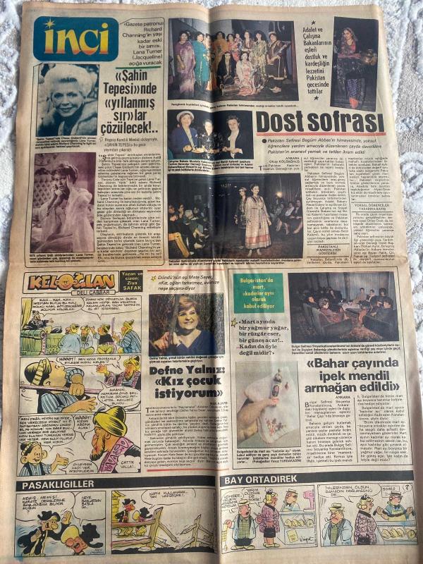 TERCÜMAN GAZETESİ İNCİ İLAVESİ DOĞUM GÜNÜ HEDİYESİ (Türkish Newspaper) - 5 NİSAN 1984 - 4 SAYFADIR -Tekin Akmansoy-Leman Cidamlı-Kadir Şengün-Zeki Alpan-Hulusi Kentmen-M. Ali Erbil-Sonat Seçkin-Halil Akçatepe-Gülşen Gürsolu-Sadi Hoşses-Dr. Asaf Demirbas-Yusuf Nalkesen-Ali Rıza Gültekin-Berhan Şimşek-Sevim Özen-Münir Özkul-Renat Fosforoğlu-Sabahattin Işık-Pearl S. Buck-Nevil Babılas-Peride Celal-Haldun Taner-Pakistan Büyükelçisi Begüm Abbas-Richard Channing-Lana Turner-Jacqueline Ziya Şafak-Defne Yalnız-Mete Sezer inci-Himmet Ağa’nın izdivacı-Türk müziğinin ustalarından seçmeler-Sadi Hoşses hacca gidiyor-İnanç Dünyası’nda Nalkesen’in kasideleri okunacak-Araştırma ve icra-Türk müziği 3-İki Aşk Arasında-Baş keli-Bunalımı önleyici beslenme rejimi-Üç Yirmidört Saat-Fatoş’la Başbaşa-İçimizdeki Şiirler-İlk Üç-Şahin Tepesi’nde yıllanmış sırlar çözülecek-Dost sofrası-Defne Yalnız Kız çocuk istiyorum-Bahar çayında ipek mendil armağan edildi-Keloğlan-Pasaklıgiller-Bay Ortadirek adlı eser, Kitap > Süreli Yayınlar > Gazeteler > Türkiye > Genel > Günlük kategorisinde İkinci El olarak satıştadır.