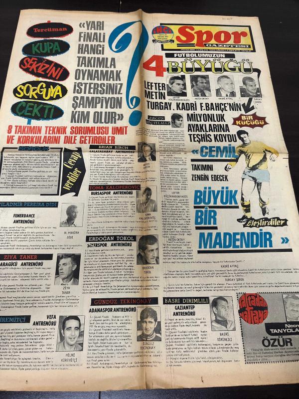 TERCÜMAN GAZETESİ İNCİ SPOR İLAVESİ - 11 OCAK 1973 - sekiz takımın teknik sorumlusu Ümit-Lefter metin Turgay ve kadri-Fenerbahçe-turgay Şeren-Metin Oktay-Ergün hiçyılmaz-brıan bırch -Bursaspor antrenörü-Toma kaloperoviç -Erdoğan tokol-Şekerspor antrenörü-basri dirimlili Gaziantep antrenörü-gündüz Tekinonay Adanaspor antrenörü-Hilmi kiremitçi-Ziya Taner-wiladmir pereira didi -Güven Taner-Öcal Uluç-Ankara’da Şekerspor-Turhan yavçan güreş federasyonu-Eskişehirspor-Trakya altın atleti Sema Bayraktar-Lüleburgaz Lisesi-Çanakkale Atatürk ilköğretim okulu krosta rakip tanımıyor-Sakarya Lisesi-tekirdağ amatör Ligi Malkara gençlik-Fenerbahçe amigosu-Ankara Necip kapanlı-okçuluk binicilik ve güreş-Cihat uskan-Fazıl Özok-rıfkı Alkan-dünyanın en genç güreş ekibi- adlı eser, Kitap > Süreli Yayınlar > Gazeteler > Türkiye > Genel > Günlük kategorisinde İkinci El olarak satıştadır.