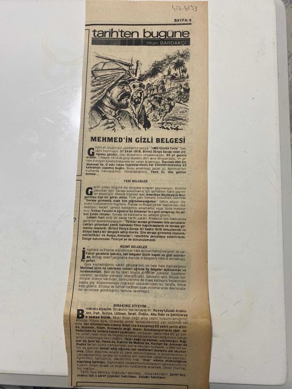 TERCÜMAN GAZETESİ KUPÜRÜ 35 x 11 cm ebatında Tek Yaprak 1980LER - TARİHTEN BUGÜNE İLHAN BARDAKÇI KÖŞE YAZISI -İlhan Bardakçı-Mehmed-Yeni Belgeler-Birakınız Diyeyim-Yavuz Donat-Adnan Kaşıkçı-Kaya Mutlu-Kemal Sunalp-Necdet Calp-Turgut Özal-Ali Bozer-tarihten bugüne-MEHMED’İN GİZLİ BELGESİ-YENİ BELGELER-BIRAKINIZ DİYEYİM-MERSİN’DE BİR FLÖRT OLAYI-SEÇİME DOĞRU-PEŞİNDE KOŞAN PARTİ adlı eser Türkçe dilindedir.
