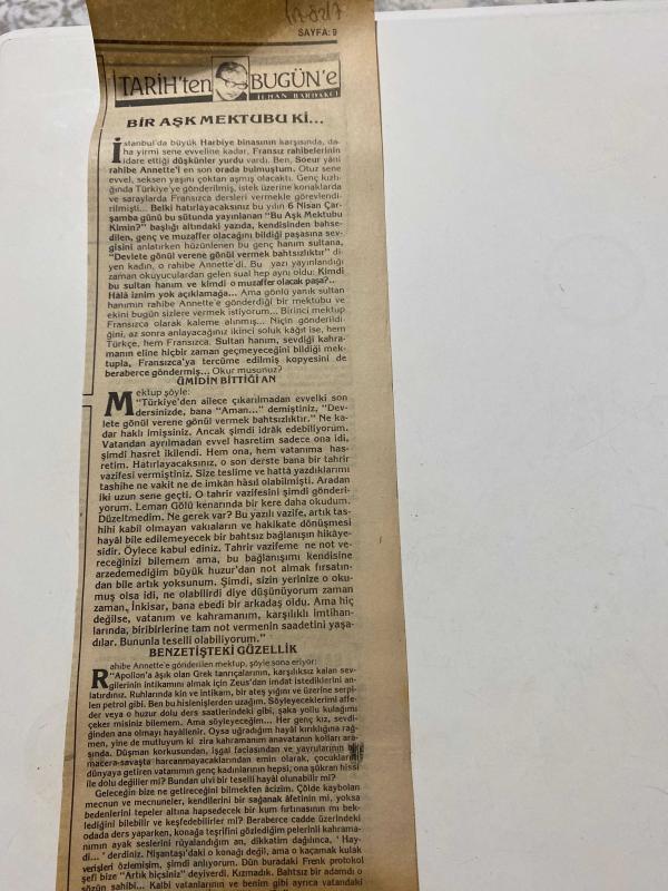 TERCÜMAN GAZETESİ KUPÜRÜ 35 x 11 cm ebatında Tek Yaprak 1980LER - TARİHTEN BUGÜNE İLHAN BARDAKÇI KÖŞE YAZISI -TARİH'ten BUGÜN'e-İLHAN BARDAKÇI-BİR AŞK MEKTUBU Kİ...-Annette-ÜMİDİN BİTTİĞİ AN-BENZETİŞTEKİ GÜZELLİK-MDP'de karışıklık-Sunalp-3 İLDE 363-Yıldırım Avcı-İsmet Kunt-Kemal Badal-Seçkin Bodoğlu-Ziya Fırat-Şaban Aktürkoğlu-Numan Güneş-Osman Gencal-Esat Güneş-Özcan Algündüz-Necdet Küçük-Faik Çakıroğlu-Ömer Ucuzal-İsmet Angı-Yusuf Özkan-Refik Sunol-Cemal Külahlı-Kenan Özer-Halil Kayaalp-Ali Elverdi-Şeref Kayalar-Ertuğrul Mat-Sadettin Karacabey-Turhan Tayan-Hüseyin Karamehmetoğlu-Adnan Hancıoğlu-Yılmaz Oval-Erdal Büke-Mehmet Gazioğlu-Rasim Keskin-Yusuf Fergani-Ahmet Seyri-Şefik Akın-Mustafa Ayhan-Aydın Erenoğlu-Işık Uğurtuğ-Müzeyyen Turgut-TÜRKİYE'YE-Nazmi Akıman-WASHINGTON-BANKALAR-Erol Aksoy-AND adlı eser, Kitap > Süreli Yayınlar > Gazeteler > Türkiye > Genel > Günlük kategorisinde İkinci El olarak satıştadır.