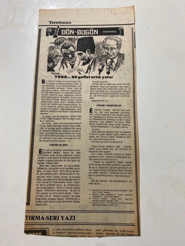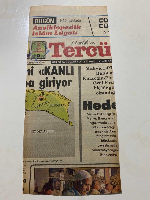 TERCÜMAN GAZETESİ KUPÜRÜ 35 x 13 cm ebatında Tek Yaprak 1980LER - TARİHTEN BUGÜNE İLHAN BARDAKÇI KÖŞE YAZISI -Bardakçı-Henri de Vigny-Laeos-Mustafa Kemal-Şeyh Said-Yooo bu gaflet artık yeter-Ülküden bu güne-Uykudan uyanamayanlar-Ansiklopedik İslam Lügati-Kanlı Hindistan’a giriyor adlı eser Türkçe dilindedir.