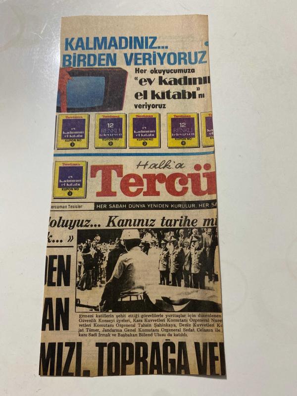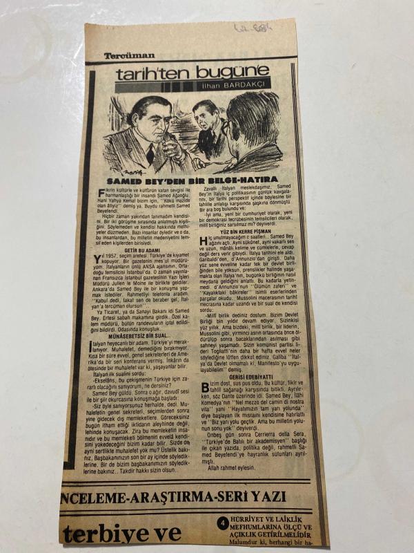 TERCÜMAN GAZETESİ KUPÜRÜ 35 x 13 cm ebatında Tek Yaprak 1980LER - TARİHTEN BUGÜNE İLHAN BARDAKÇI KÖŞE YAZISI -İlhan Bardakçı-Samed Ağaoğlu-Yahya Kemal-Julien Le Moine-Mussolini-Togliatti-Samed Bey’den bir belge hatıra-Getir bil adamı-Yüz bin kere pişman-Gerişi edebiyatı-Kalmadınız birden veriyoruz-Ev kadının el kitabı adlı eser Türkçe dilindedir.