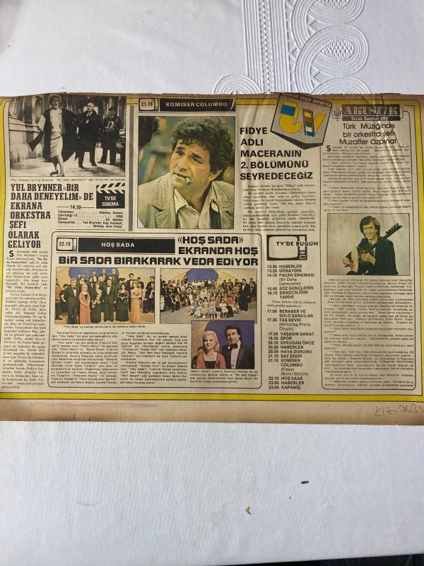 TERCÜMAN GAZETESİ TÜRKISH NEWSPAPER- 27x40 ebatında tek yaprak kupür-Yul Brynner-Bir Daha Deneyelim-Komiser Columbo-Fidye adlı maceranın 2. bölümünü seyredeceğiz-Muzaffer Özpınar-Hoş Sada-Bir Sada Bırakarak Veda Ediyor-Arab’ın Türk’e hasret belgeleri-Olaylar ve belgelerle-İlhan Bardakçı-Müşhir Sadık Paşa-Hindli Mehdi askeri-Necip (çizer imzası) adlı eser Türkçe dilindedir.