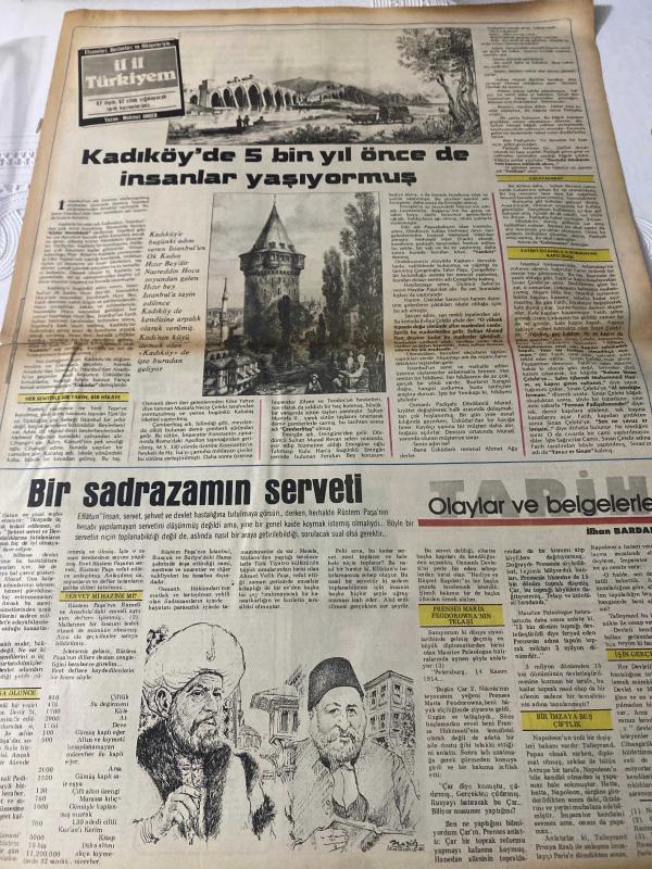TERCÜMAN GAZETESİ TÜRKISH NEWSPAPER-6 HAZİRAN 1982-İmparatorluğa Veda-İlhan Bardakçı-Bir Başvekilin Feci Sonu-Mithat Paşa-Mahmut Paşa-Kara Leke-İhtimaller Silsilesi-Felicita Mutluluk-Romina Power-Al Bano-Türkiye’ye ilk fırsatta tekrar geleceğiz-Sheila tatile çıkıyor-Sheila-Gary Cooper-Richard Harris-Nikka Costa-Kadıköy’de 5 bin yıl önce de insanlar yaşıyormuş-Bir sadrazamın serveti-Rüstem Paşa-Olaylar ve belgelerle-Prenses Marla Fedorovna-Necip (çizer imzası) adlı eser Türkçe dilindedir.