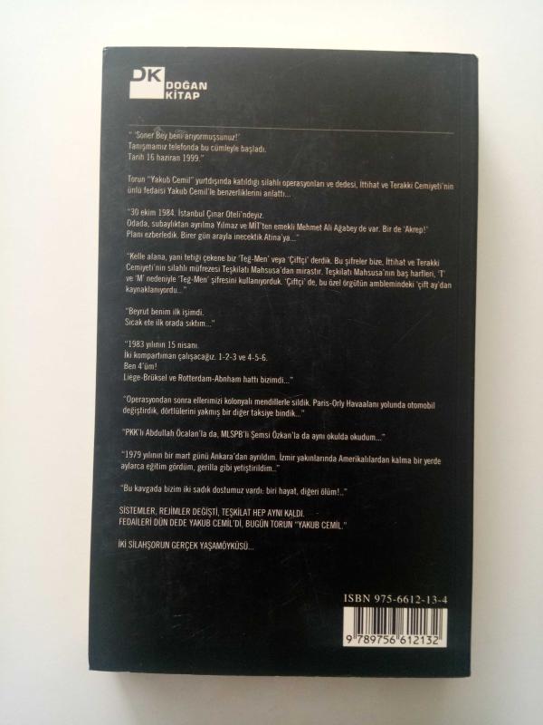 " 'Soner Bey beni arıyormuşsunuz!' Tanışmamız telefonda bu cümleyle başladı. Tarih 16 haziran 1999." Torun "Yakub Cemil" yurtdışında katıldığı silahlı operasyonları ve dedesi, İttihat ve Terakki Cemiyeti'nin ünlü fedaisi Yakub Cemil'le benzerliklerini anlattı.. "30 Ekim 1984. İstanbul Çınar Oteli'ndeyiz. Odada, subaylıktan ayrılma Yılmaz ve MİT'ten emekli Mehmet Ali Ağabey de var. Bir de 'Akrep!' Planı ezberledik. Birer gün arayla inecektik Atina'ya..." "Kelle alana, yani tetiği çekene biz 'Teğ-Men' veya 'Çiftçi' derdik. Bu şifreler bize, İttihat ve Terakki Cemiyeti'nin silahlı müfrezesi Teşkilatı Mahsusa'dan mirastır. Teşkilatı Mahsusa'nın baş harfleri, 'T' ve 'M' nedeniyle 'Teğ-Men' şifresini kullanıyorduk. 'Çiftçi'de, bu özel örgütün amblemindeki 'çift ay'dan kaynaklanıyordu...." "Beyrut benim ilk işimdi. Sıcak ete ilk orada sıktım..." "1983 yılının 15 nisanı. İki komportıman çalışacağız. 1-2-3 ve 4-5-6. Ben 4'üm! Liége-Brüksel ve Rotterdam--Abnham hattı bizimdi..." "Operasyondan sonra ellerimizi kolonyalı mendillerle sildik. Paris-Orly Havaalanı yolunda otomobil değiştirdik, dörtlülerini yakmış bir diğer taksiye bindik..." "PKK'lı Abdullah Öcalan'la da, MLSPB'li, Şemsi Özkan'la da aynı okulda okudum..." "1979 yılının bir mart günü Ankara'dan ayrıldım. İzmir yakınlarında Amerikalılardan kalma bir yerde aylarca eğitim gördüm, gerilla gibi yetiştirildim." "Bu kavgada bizim iki sadık dostumuz vardı: biri hayat, diğeri ölüm!.." Sistemler, Rejimler değişti, teşkilat hep aynı kaldı. Fedaileri dün Dede Yakub Cemil'di, bugün Torun "Yakub Cemil." İki Silahşorun Gerçek Yaşamöyküsü...