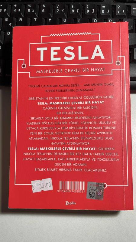 TESLA MASKELERLE ÇEVRİLİ BİR HAYAT - YILIN EN İYİ ROMANI ÖDÜLÜ - VLADIMIR PISTALO - ZEPLİN YAYINLARI BİRİNCİ BASIM 2017, VLADIMIR PISTALO tarafından kaleme alınmıştır. Kitap 2017 yılında ZEPLİN YAYINLARI tarafından [İSTANBUL] yayınlanmıştır. Satışta olan kitap, yayınevinin 4. baskısıdır. 471 sayfadır. TESLA MASKELERLE ÇEVRİLİ BİR HAYAT - YILIN EN İYİ ROMANI ÖDÜLÜ - VLADIMIR PISTALO - ZEPLİN YAYINLARI BİRİNCİ BASIM 2017 adlı eser Türkçe dilindedir.