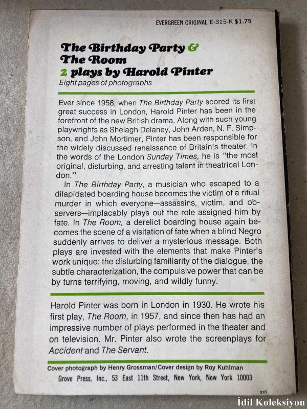 THE BİRTHDAY PARTY & THE ROOM - 2 PLAYS BY HAROLD PİNTER - GROVE PRESS - İNGİLİZCE KİTAP (DOĞUM GÜNÜ PARTİSİ VE ODA - HAROLD PİNTER'DAN 2 OYUN)