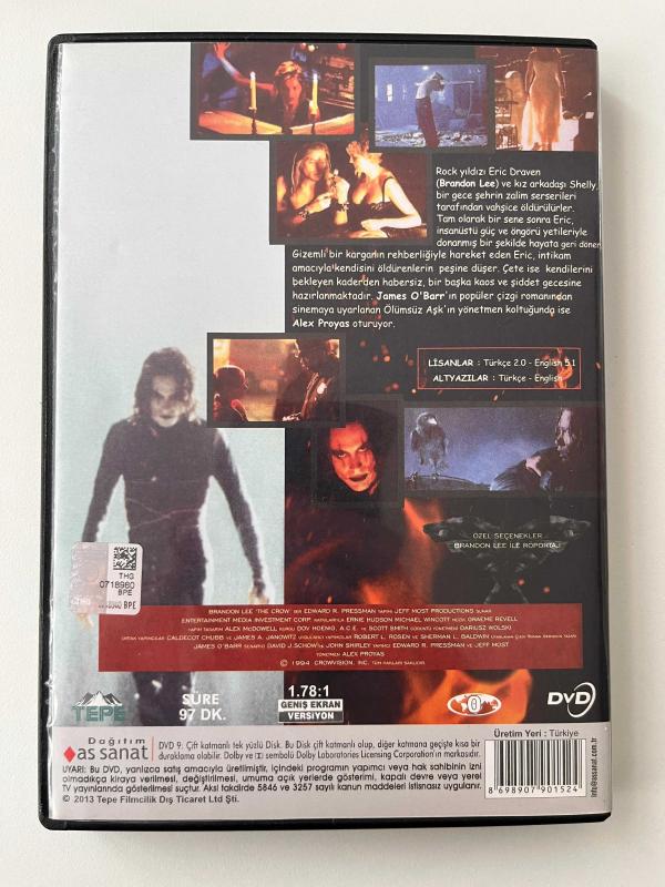 THE CROW * ÖLÜMSÜZ AŞK * BRANDON LEE * ALEX PROYAS * 1994 * TÜRKÇE DUBLAJ VE ALTYAZILI * DVD, 13 gün önce satışa sunulmuştur.