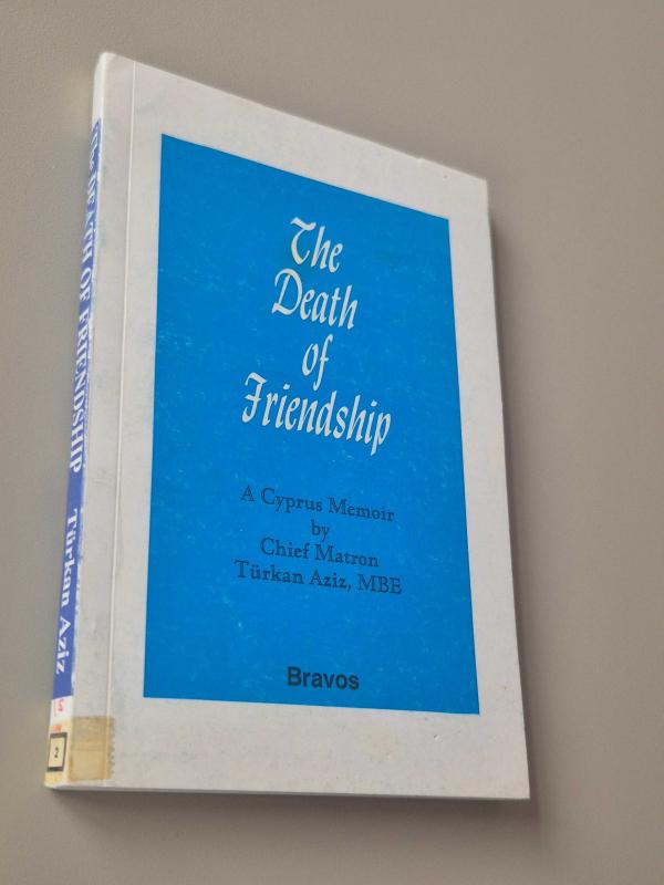 THE DEATH OF FRIENDSHIP - A Cyprus Memoir by Chief Matron Türkan Aziz, MBE, TÜRKAN AZİZ tarafından kaleme alınmıştır. Kitap 2000 yılında BRAVOS tarafından [İNGİLTERE] yayınlanmıştır. 158 sayfadır. THE DEATH OF FRIENDSHIP - A Cyprus Memoir by Chief Matron Türkan Aziz, MBE adlı eser Türkçe dilindedir.