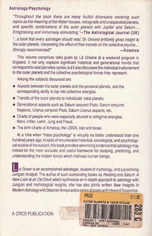 THE OUTER PLANETS & THEIR CYCLES / THE ASTROLOGY OF THE COLLECTIVE, LIZ GREENE tarafından kaleme alınmıştır. Kitap 1996 yılında CRCS PUBLICATIONS tarafından [USA] yayınlanmıştır. 186 sayfadır. THE OUTER PLANETS & THEIR CYCLES / THE ASTROLOGY OF THE COLLECTIVE adlı eser İngilizce dilindedir.