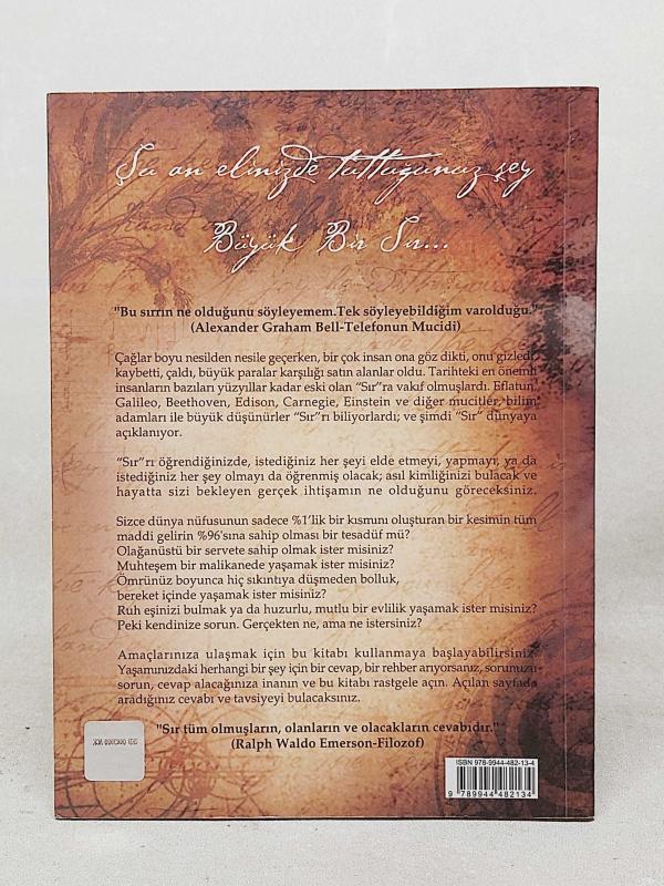 THE SECRET, RHONDA BYRNIE tarafından kaleme alınmıştır. Kitap 2007 yılında MİA BASIM YAYINLARI tarafından [İSTANBUL] 978-9944-482-13-4 ISBN kodu ile yayınlanmıştır. Bu baskının çevirisi CAN ÜSTÜNUÇAR tarafından yapılmıştır. 198 sayfadır. THE SECRET adlı eser Türkçe dilindedir.