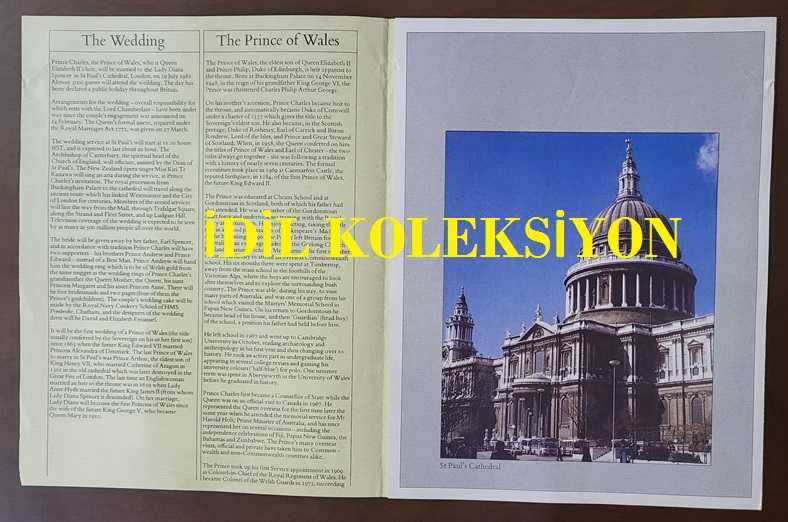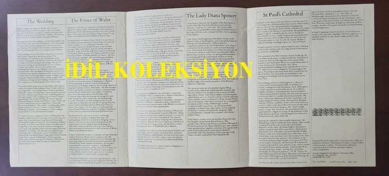 THE WEDDING OF THE PRINCE OF WALES AND THE LADY DIANA SPENCER - PRENSES DIANA ve PRENS CHARLES'IN DÜĞÜNÜYLE İLGİLİ TANITIM BROŞÜRÜ (3 YAPRAK) - 23 x 18 cm EBADINDA - PROMOTIONAL BROCHURE FOR THE WEDDING OF PRINCESS DIANA AND PRINCE CHARLES