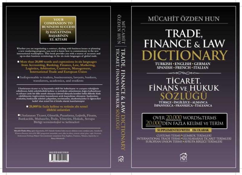 TİCARET, FİNANS VE HUKUK SÖZLÜĞÜ, MÜCAHİT ÖZDEN HUN tarafından kaleme alınmıştır. Eser Alaattin Topçu editörlüğünde hazırlanmıştır. Kitap 2014 yılında KeKeMe Yayınları tarafından [Ankara] 978-605-5009-62-5 ISBN kodu ile yayınlanmıştır. Satışta olan kitap, yayınevinin 1. baskısıdır. 472 sayfadır. TİCARET, FİNANS VE HUKUK SÖZLÜĞÜ adlı eser Türkçe dilindedir.