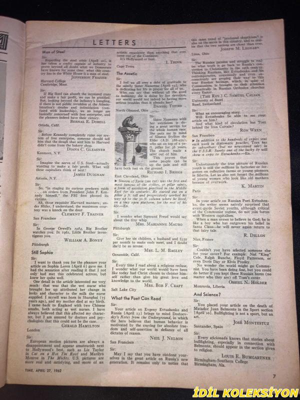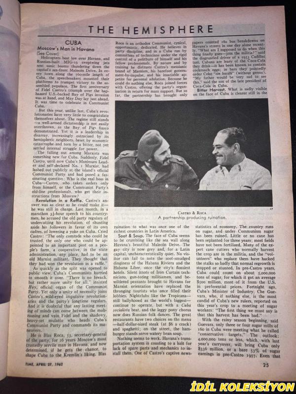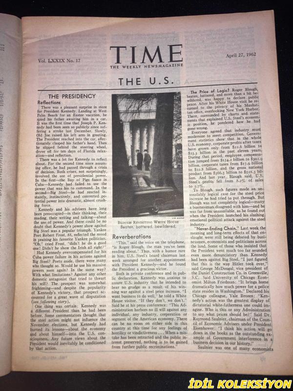 TIME - APRIL 27 , 1962 : THE WEEKLY NEWSMAGAZINE / 27 NİSAN 1962 / VINTAGE ENGLISH MAGAZINE / COMMUNIST CHIEF BLAS ROCA / THE EASIER LIFE OF MADAME DUVAL / ROLEX / SENIOR SERVICE / JEFFERSON FRAZIER / BERNAL E. DOBELL / DIANA C. GLEASNER / JAMES DUIGNAN / CLEMENT F. TRAINER / WILLIAM A. BONEY / GERALD HAMILTON / NEIL J. NELSON / RICHARD I. BRIGGS / DANIEL TOTIRE / JOSEPH M. LEONARD / RON WREN / K. MARTIN / R. DILLON / OSSIEL N. HOLDER / JOSE MONTESTUZ / LOUIS E. BUMGARTNER / BEN HALL / GAVIN SCOTT IN HAVANA / SENATOR PROXMIRE / RESERVIST CHIDESTER / A DIALOGUE ON STEEL / HAMILTON & MEEHAN / SCRANTON / JOHNSON / CONGRESSWOMAN JESSICA WEIS / PRESIDENT GENERAL DUNCAN / DR. SPOCK / KHRUSHCHEV AT COMMUNIST CONGRESS / SCION STALIN / TITO & GROMYKO IN BELGRADE / TRAITOR SALAN UNDER ARREST / SHAH & EMPRESS IN MANHATTAN PARADE / SIR ROY WELENSKY / FORD / CASTRO & ROCA / CONTACT MAN RODRIGUEZ / ANTI-COMMUNIST MATOS / DIEFENBAKER / PEARSON / FAULKNER & CADETS / PERKINS & BEULAH THE BOA / VEGA II