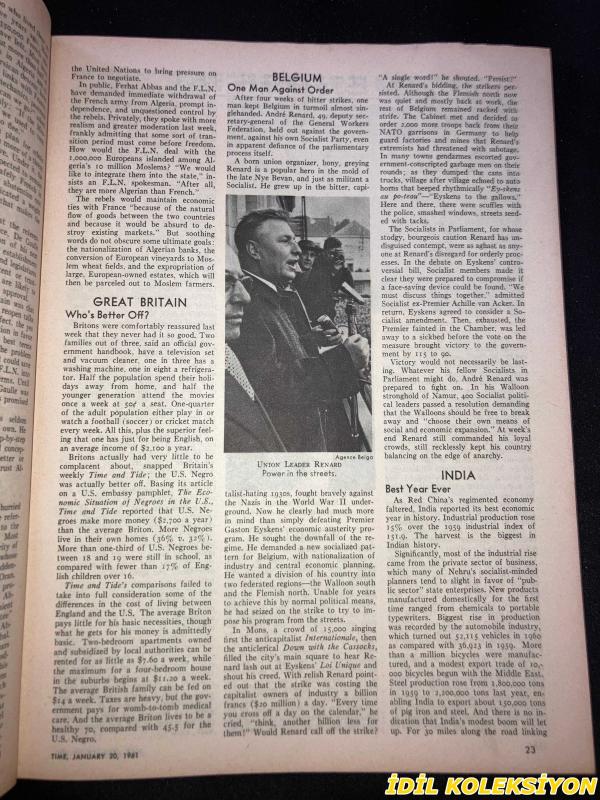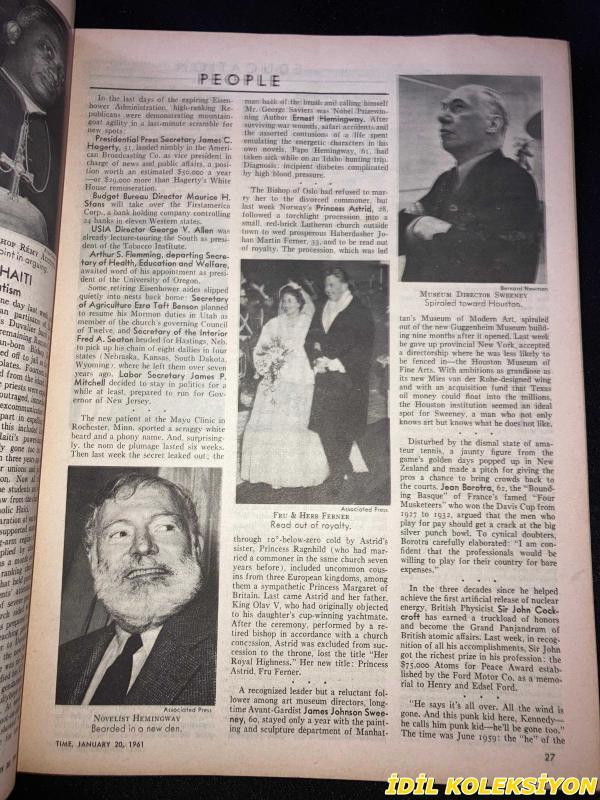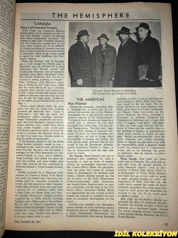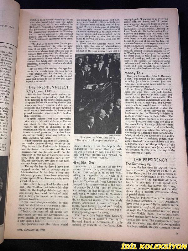 TIME - JANUARY 20 , 1961 : THE WEEKLY NEWSMAGAZINE / 20 OCAK 1961 / VINTAGE ENGLISH MAGAZINE / JACQUELINE KENNEDY / WILLIAM S. BURFORD / PAUL E. DROST / MARTIN BERTRAND / PETER ROBERT RENTSCHLER / GEORGE S. MUMFORD / EVELYN CRANE / JAMES KISSANE / EDWIN M. MCMILLAN / NORRIS E. CHAPMAN / STEVEN H. SASSOON / HENRY MINOTT / EDWARD A. CRANE / THOMAS HUDSON MCKEE / VICENTE ABAD SANTOS / R. L. W. RITCHIE / THOMAS SKELLY / NORMAN MAILER / CHRISTOPHER Z. HOBSON / J.B. O'SHEA / FRANKLIN ROOSEVELT / KENNEDY WITH IKE / HARRY TRUMAN / HERBERT HOOVER / PRESIDENT EISENHOWER / DEAN RUSK TESTIFYING / SCIENCE ADVISER WIESNER / JACQUELINE KENNEDY 1957 / VIRGINIA FOISIE RUSK / ETHEL SKAKEL KENNEDY / MARTHA ELIZABETH BLAKENEY HODGES / ERMALEE WEBB UDALL / MARGARET CRAIG MCNAMARA / JANE SHIELDS FREEMAN / RUTH SIEGEL RIBICOFF / MARY LOUISE BURGESS DAY / DOROTHY KURGANS GOLDBERG / PHYLLIS ELLSWORTH DILLON / KHRUSHCHEV / U.S. HEINTGES / PREMIER FERHAT ABBAS / UNION LEADER RENARD / KATANGA'S TSHOMBE / ORIGEN