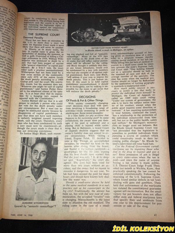 Kitap 1968 yılında TIME tarafından [U.K] yayınlanmıştır. 68 sayfadır. TIME - JUNE 14 , 1968 : THE WEEKLY NEWSMAGAZINE / 14 HAZİRAN 1968 / VINTAGE ENGLISH MAGAZINE / ROBERT KENNEDY / JEEP / KENNEDY WORKERS NEAR SHOOTING SCENE / 27 MINUTES ON JUNE 5-1968 A LIFE ON THE WAY TO DEATH / ROSE KENNEDY / KENNEDY CHILDREN AT ST. PATRICK'S REQUIEM / LEE RADZIWILL , RALPH ABERNATHY & JACKIE KENNEDY AT BIER / POLITICS & ASSASINATION / THE FUGITIVE 1968 / USS UNITED STATES STEEL INTERNATIONAL / NORTH VIET NAM'S TEAM : BO , THO & THUY / RANDOLPH CHURCHILL / WINNER VELASCO / ROLEX / DR. BAZILAUSKAS / CAMPARI / SAN FRANCISCO'S NATHAN HARE / FIAT / SCOTT & CHRISTIE / WESSELMANN EXHIBIT IN CHICAGO / OLITSKI'S CLOUDS OF MOONGLOW / AIR FRANCE CARGO / KENT (İLK SAYFASINDA KÜÇÜK BİR YIRTILMA MEVCUT) adlı eser İngilizce dilindedir.