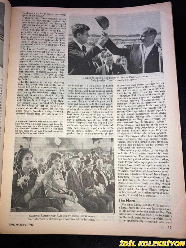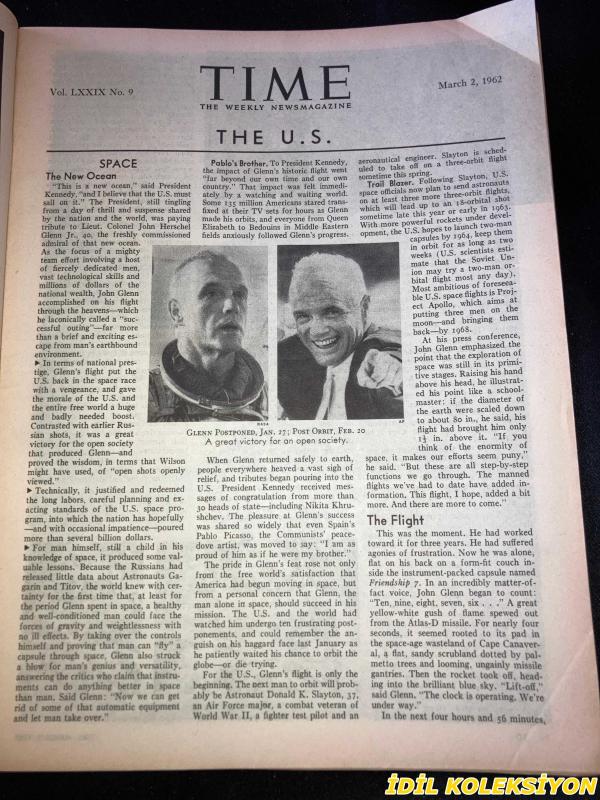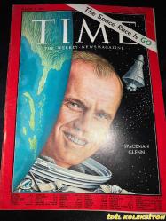 TIME - MARCH 2 , 1962 : THE WEEKLY NEWSMAGAZINE / 2 MART1962 / VINTAGE ENGLISH MAGAZINE / SPACEMAN GLENN / RICHARD N. HALE / HENRY B. MCBRIDE / ANDREW M. ANDERSEN / CHARLES L. LARUE / VARTOOSH MOORADIAN / CANDACE O'BRION / LAMAR S. PEREGOY JR. / JEAN LOUIS GOUIN / RICHARD H. WOMACK / JOSEPH KERRIGAN / GEORGE KILLION / CLAY NOIA / ASUMAN K. WHITHAM / FREDERICK O. COWLES / MABEL I. SILVER M.D. / LIEUT. COLONEL JOHN HERSCHEL GLENN JR. / FIVE KEY GROUNDLINGS : ROBERT R. GILRUTH , WALTER C. WILLIAMS JR , CHRISTOPHER COLUMBUS KRAFT JR , JOHN YARDLEY , WILLIAM K. DOUGLAS / SOVIET ROCKET ON PARADE IN MOSCOW / BOBBY KENNEDY / SPECIAL FORCES ROSSON / MCCLELLAN / MANSFIELD / REBEL BEN BELLA / PEACEMAKER IN THE SKI RESORT - LOUIS JOXE / LORD RUSSELL / SOCIALIST NENNI / PHILOSOPHER HU SHIH / PAYSON & STENGEL / MONROE & DIMAGGIO / ASTON MARTIN / HENRY FONDA / OLIVIA DE HAVILLAND / ANTOİNE BOURDELLE / MASTER LEE / TAYLOR & MANKIEWICZ / JEAN SHEPHERD / MARTHA DEANE / JOHN A. GAMBLING / LONG JHON NEBE