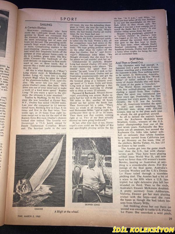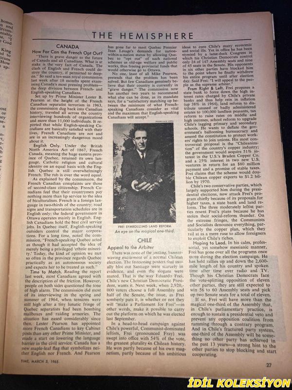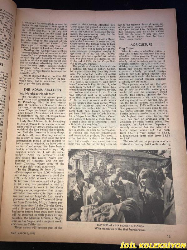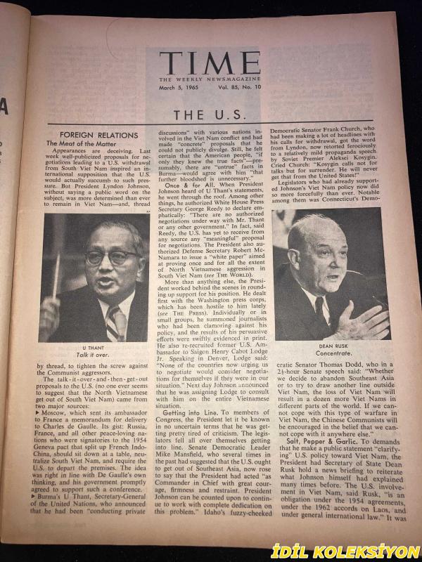 TIME - MARCH 5 , 1965 : THE WEEKLY NEWSMAGAZINE / 5 MART 1965 / VINTAGE ENGLISH MAGAZINE / JEANNE MOREAU / CAMPARİ / ELLIOTT SMITH / MARIE E. CASH / GEORGE S. CLARKE / SANDY TOLBERT / MATTHEW WALSH / GORDON DISHKE / FRANK C. WORBS JR. / ROBERT V. YOUNG / GERD S. GROMBACHER / J.F. ZEID / EVSEI LIBERMAN / D.A. WILLIAMS / RETO L. M. WYLER / ROBERT U. VON ARX / RENE BRÜTSCH / DR. ERNST BASLER / JACK GARNER / FRED J. EBELING / LETITA M. SULLIVAN / ARTIST TAMAYO / DEAN RUSK / LADY BIRD / JIMMY JUNIOR & ELLIOTT AT 1964 NATIONAL DEMOCRATIC CONVENTION / MALCOLM LITTLE / ELIJAH MUHAMMAD AT CHICAGO RALLY / NORTH VIET NAM'S GENERAL GIAP / HO CHI MINH / GENERAL NE WIN / BENSON & HEDGES / PHILIPS / LEMAY & GABLE / AUSTRIA'S WIZARDLY COLORIST - HUNDERTWASSER / EDGAR BRONFMAN / PRESIDENT JOHNSON & REPORTERS ON WHITE HOUSE LAWN / RESNAIS & FALK / LLYOD & ANN HAND AT PAKISTANI EMBASSY PARTY / JANE WILSON / LARRY RIVERS / MARILYNN KARP / MR JUSTICE FRANKFURTER / CHAPLAIN BURKE / FIAT / CHERRY HEERING