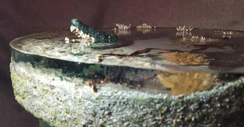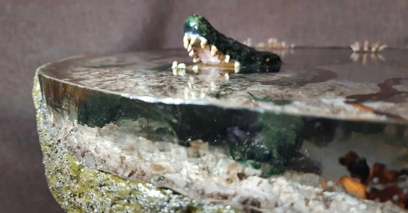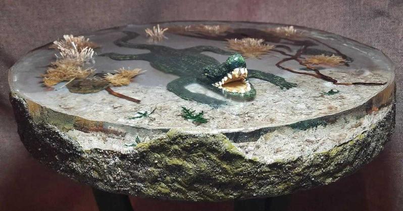 "Yaşayan sehpalar" isimli el yapımı bu serimizin "Timsah" isimli çalışması ile sizlerleyiz. Çalışmamız epoksi ile yapılmış olup, sağlamlığı en yüksek seviyededir. Çalışmalarımızın her biri bir adettir, özgündür. Çap: 43cm Yükseklik: 60cm